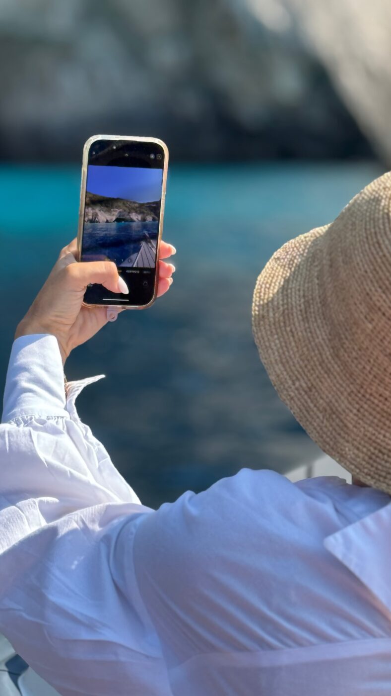 Για διακοπές στους Παξούς βρίσκεται η Αθηνά Οικονομάκου μαζί με τον σύντροφό της, Μπρούνο Τσερέλα.
