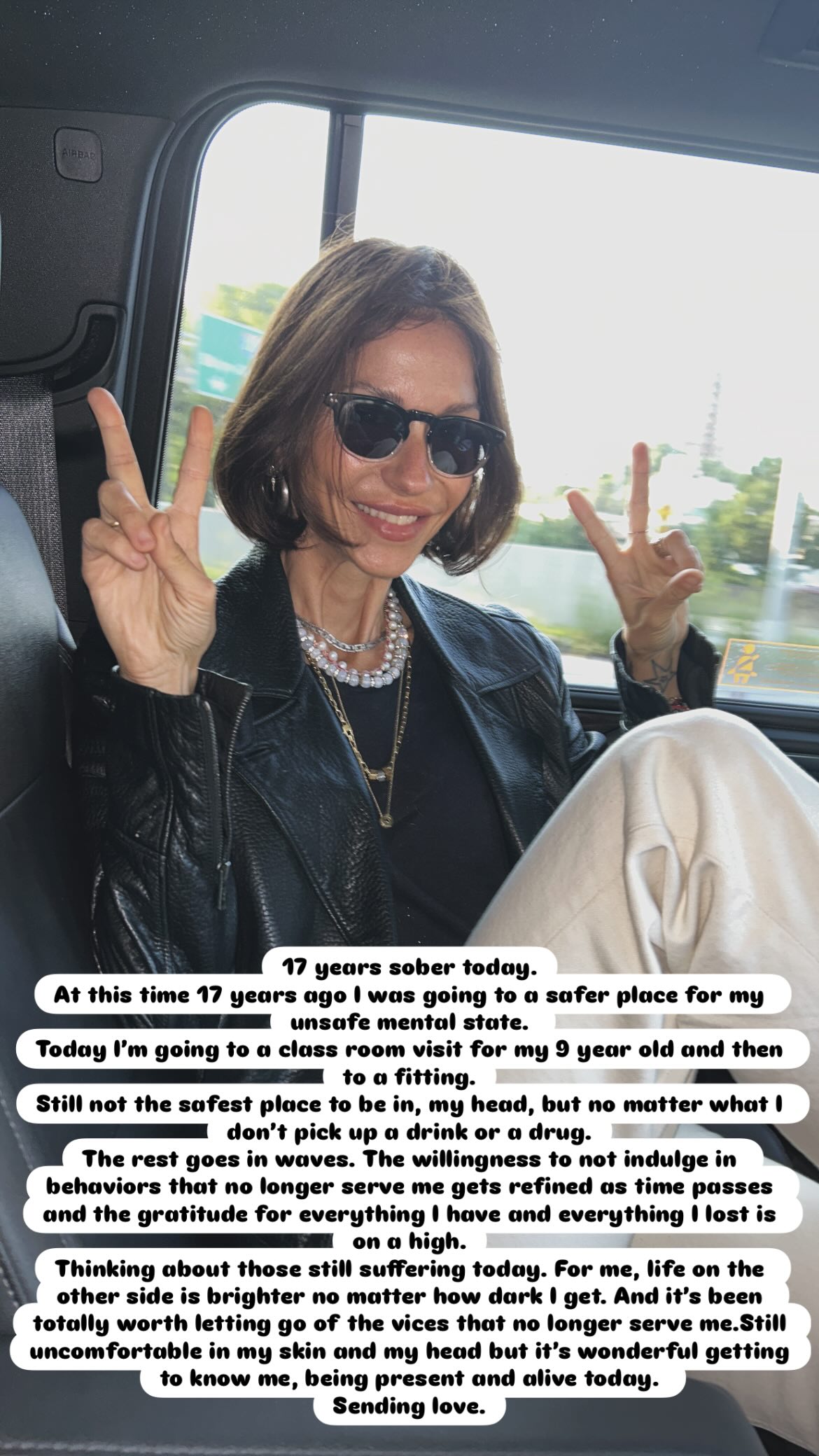 «17 χρόνια νηφάλια σήμερα. Την ίδια στιγμή πριν από 17 χρόνια πήγαινα σε ένα πιο ασφαλές μέρος για την ασταθή ψυχική μου κατάσταση. Σήμερα πηγαίνω σε μια επίσκεψη στην τάξη του 9χρονου παιδιού μου και μετά σε μια πρόβα. Ακόμη δεν είναι το πιο ασφαλές μέρος να βρίσκομαι, το κεφάλι μου, αλλά ό,τι κι αν γίνει δεν πιάνω ούτε ποτό ούτε ναρκωτικό».