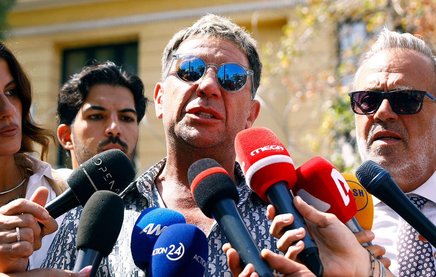 Στα δικαστήρια βρέθηκε ο Γιώργος Μαζωνάκης λίγα λεπτά πριν από τις 12.00 το μεσημέρι της Παρασκευής 12 Σεπτεμβρίου, συνοδευόμενος από τον δικηγόρο του, Γιώργο Μερκουλίδη.