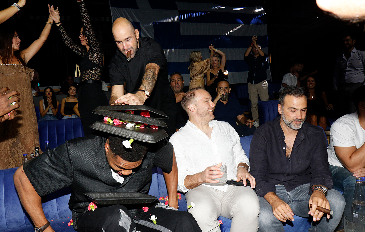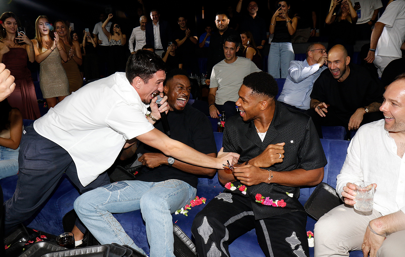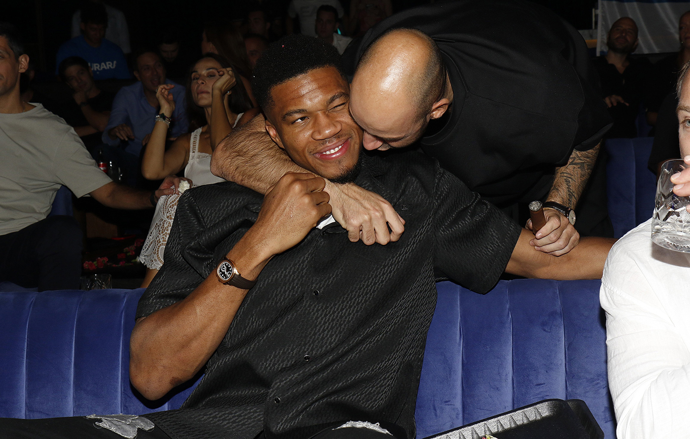 Ξεχωριστή νότα στη βραδιά έδωσε ο Γιαννούλης Λαρεντζάκης, ο οποίος πήρε το μικρόφωνο και έδωσε δικό του σόου, σκορπίζοντας χαμόγελα στους συμπαίκτες του. Δίπλα του, ο Βασίλης Σπανούλης, φανερά ικανοποιημένος για την επιβράβευση της σκληρής δουλειάς και της προσπάθειας που οδήγησαν στη μεγάλη διάκριση. Στο επίκεντρο και οι αδελφοί Αντετοκούνμπο, που έδειχναν να απολαμβάνουν κάθε στιγμή αυτής της ιστορικής βραδιάς.