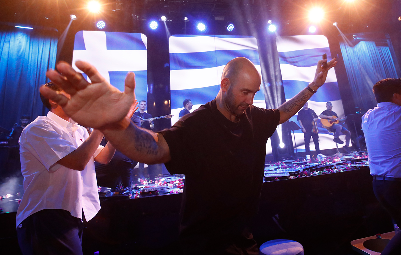 Οι παίκτες της Εθνικής πανηγύρισαν την επιστροφή στο βάθρο ύστερα από 16 χρόνια, διασκεδάζοντας με τις επιτυχίες του Θοδωρή Φέρρη, ο οποίος δεν παρέλειψε να αφιερώσει το «Πού ’σαι Θανάση» στον Θανάση Αντετοκούνμπο, που κυριολεκτικά «πνίγηκε» στα λουλούδια. Σε μια στιγμή-έκπληξη, ο Βασίλης Σπανούλης ανέβηκε στη σκηνή, γνωρίζοντας την αποθέωση του κόσμου.