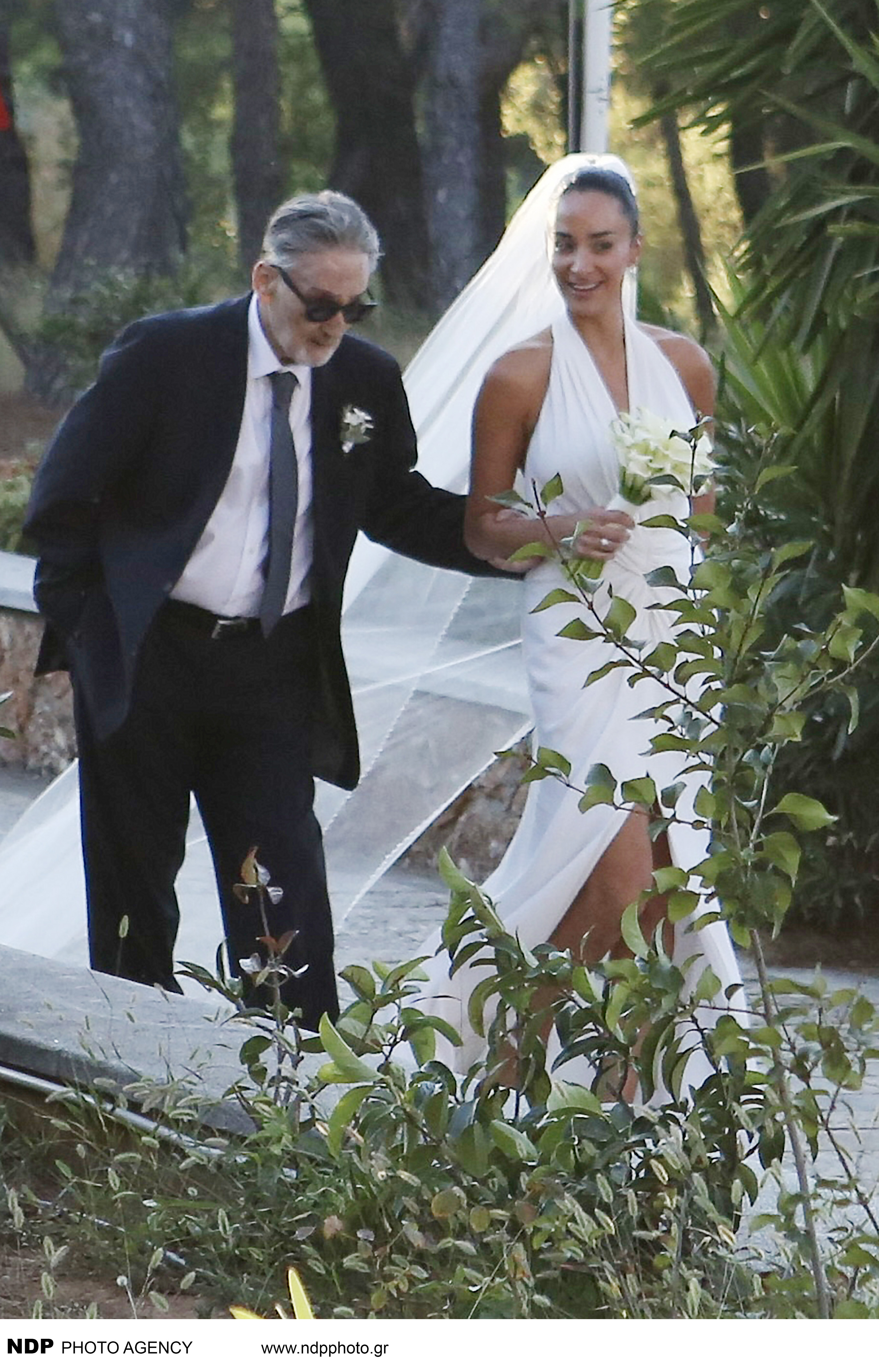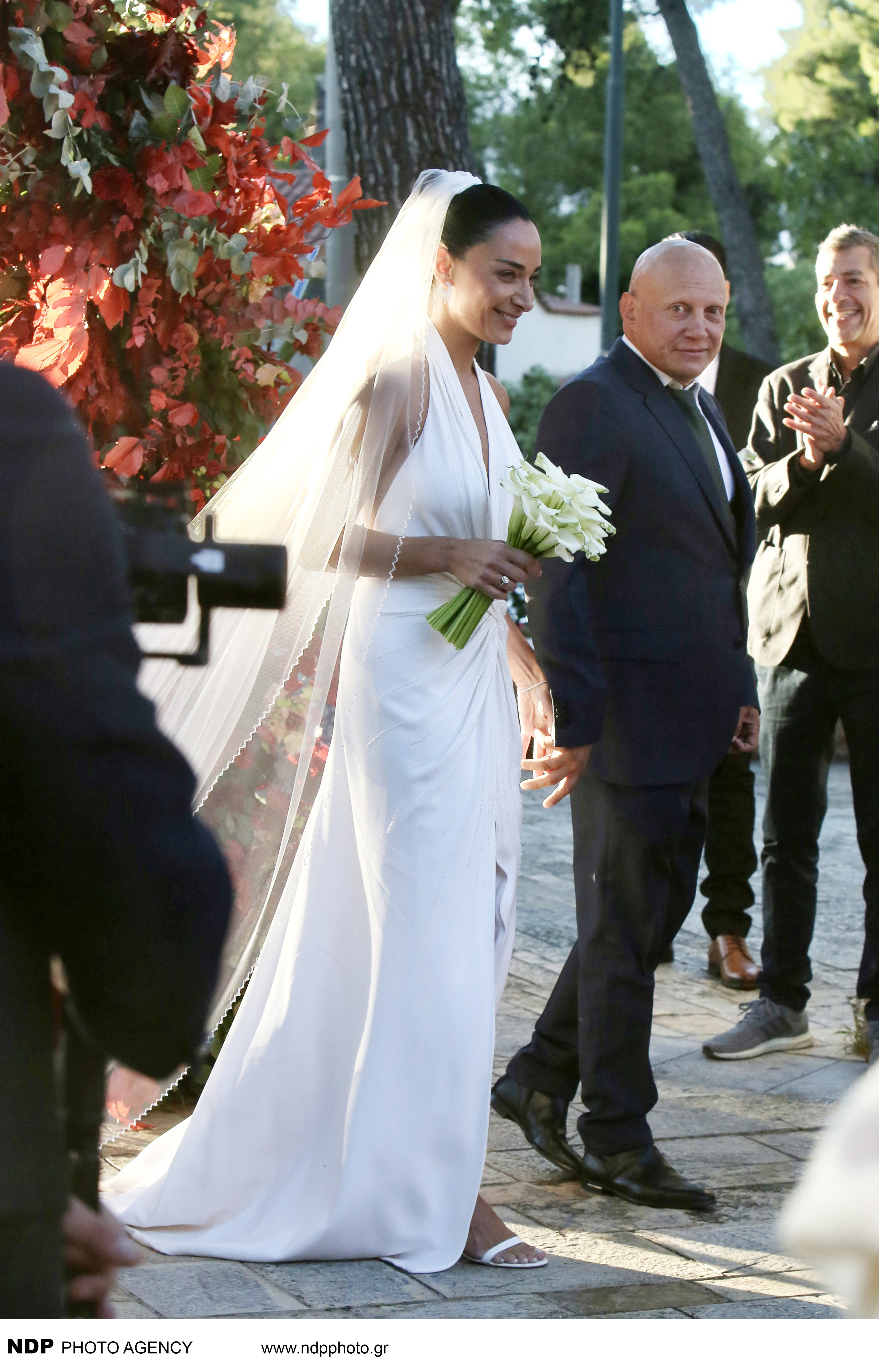 Η νύφη, Κατερίνα Μπιρμπίλη, κόρη της μουσικού και εκδότριας του ιστορικού οίκου «Άγκυρα», Αναστασίας Παπαδημητρίου, έλαμπε στο λευκό νυφικό της.