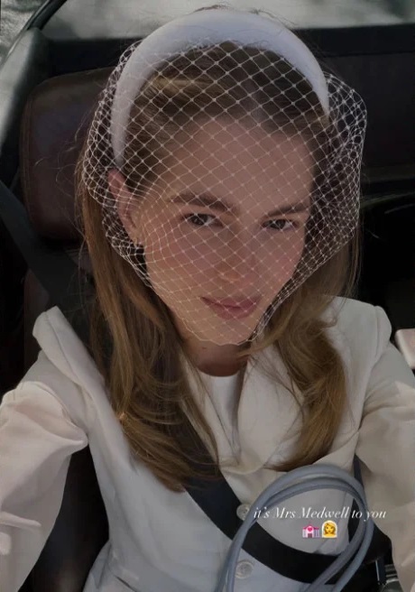 Η κόρη του Πέτρου Κωστόπουλου και της Τζένης Μπαλατσινού μοιράστηκε στιγμιότυπα από την τελετή με τους διαδικτυακούς της φίλους, μέσω του προσωπικού της λογαριασμού στο Instagram. Στο βίντεο που ανάρτησε, εμφανίζεται με ένα κομψό off white κοστούμι, ενώ δίνει ένα τρυφερό φιλί στον σύζυγό της, αποπνέοντας χαρά και συγκίνηση.
