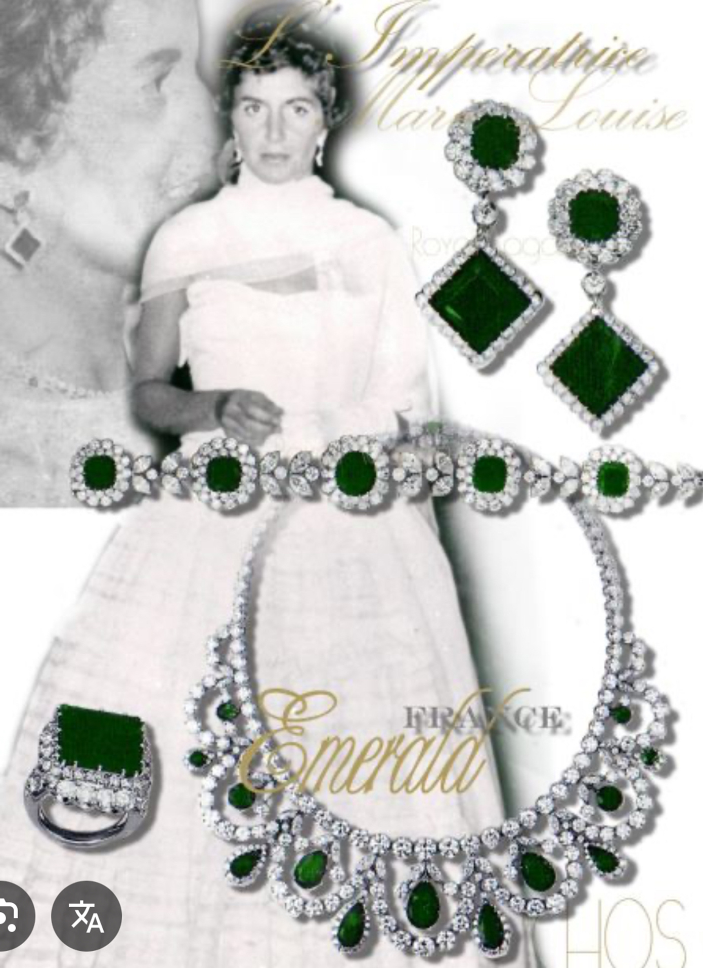 Μετά τον θάνατο της Μαρίας Λουίζας, το 1847, η πρώην αυτοκράτειρα της Γαλλίας, κληροδότησε το κληροδότημα με την τιάρα, το σμαραγδένιο περιδέραιο, τα σμαραγδένια σκουλαρίκια και τη σμαραγδένια καρφίτσα στους συγγενείς της, από τον αυτοκρατορικό Οίκο των Αψβούργων. Περνώντας τα χρόνια ο διάσημος οίκος υψηλής κοσμηματοποιίας VanCleef & Arpels κατέθεσε προσφορά στους απογόνους του Οίκου του Αψβούργων για αγορά όλου του σετ. Κάτι όμως που δεν ικανοποίησε την οικογένεια και έτσι κατάφερε μόνο να αποκτήσει την αρχική τιάρα. Η ιστορία αναφέρει πως τα υπόλοιπα κομμάτια του αυτοκρατορικού σετ αγοράστηκαν από ιδιώτη συλλέκτη και κατέληξαν με τα χρόνια στο Μουσείο του Λούβρου, από όπου και κλάπηκαν το περιδέραιο με τα σκουλαρίκια του.