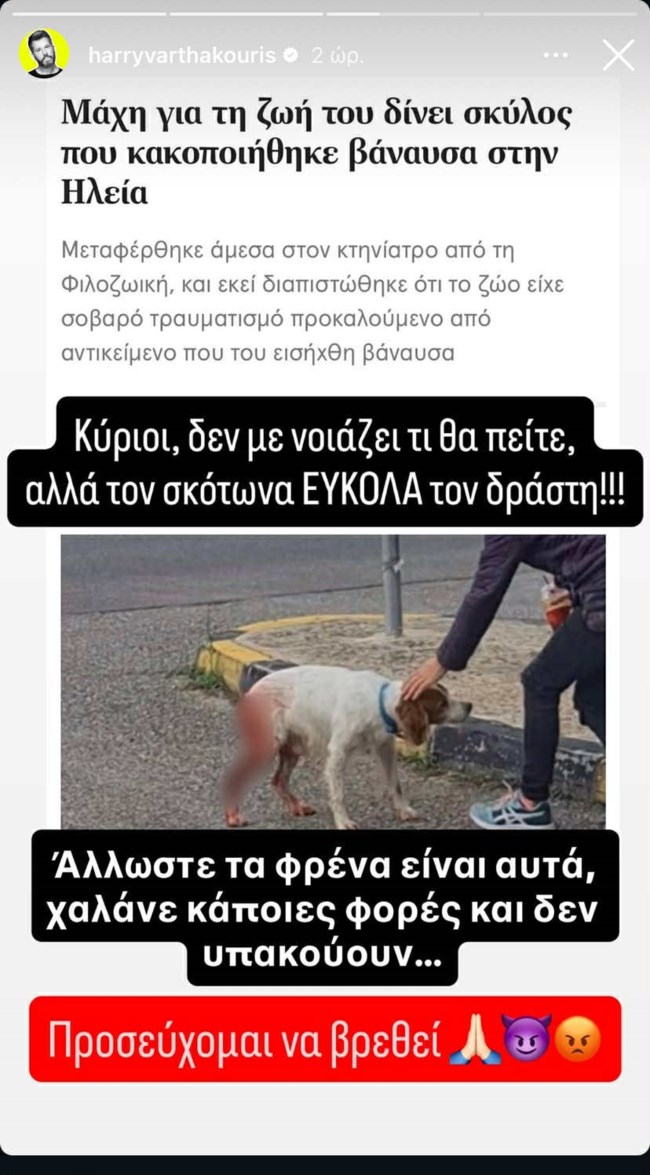 Ανάμεσα σε αυτούς που αντέδρασαν έντονα ήταν και ο Χάρης Βαρθακούρης. Ο τραγουδιστής προχώρησε σε μία σκληρή ανάρτηση στον προσωπικό του λογαριασμό στο Instagram, εκφράζοντας την απόλυτη αγανάκτησή του για τον δράστη: