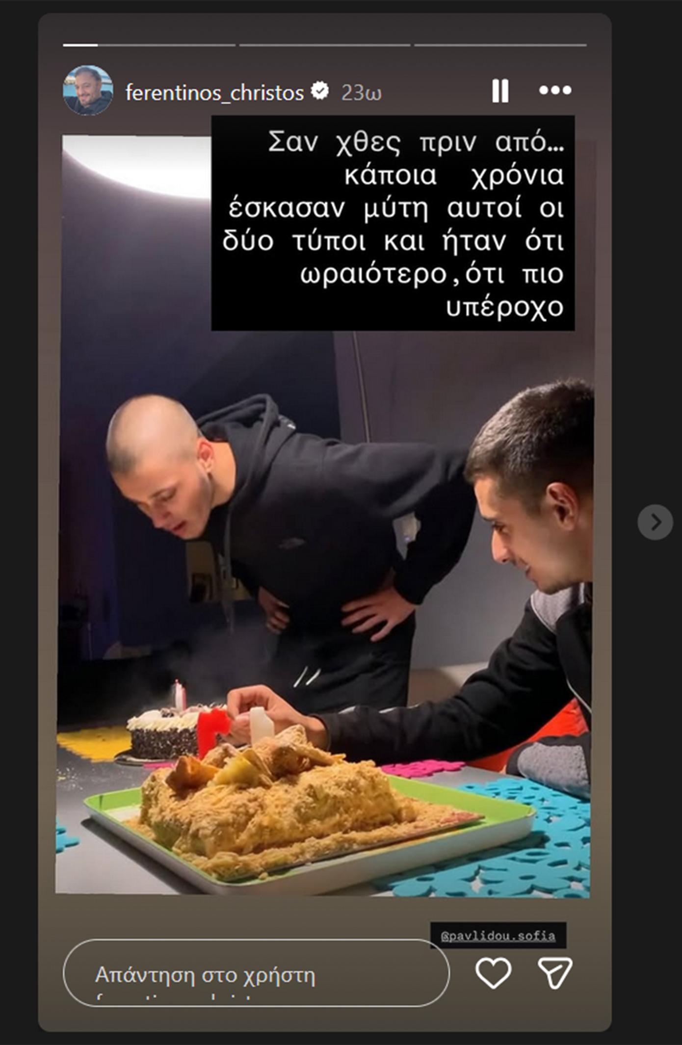 Με αφορμή τα γενέθλια των διδύμων, ο Χρήστος Φερεντίνος δημοσίευσε μια φωτογραφία τους και έγραψε συγκινημένος: «Σαν χθες πριν από κάποια χρόνια έσκασαν μύτη αυτοί οι δυο τύποι και ήταν ό,τι ωραιότερο, ό,τι πιο υπέροχο».