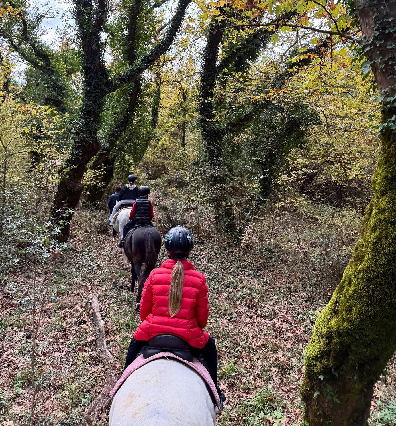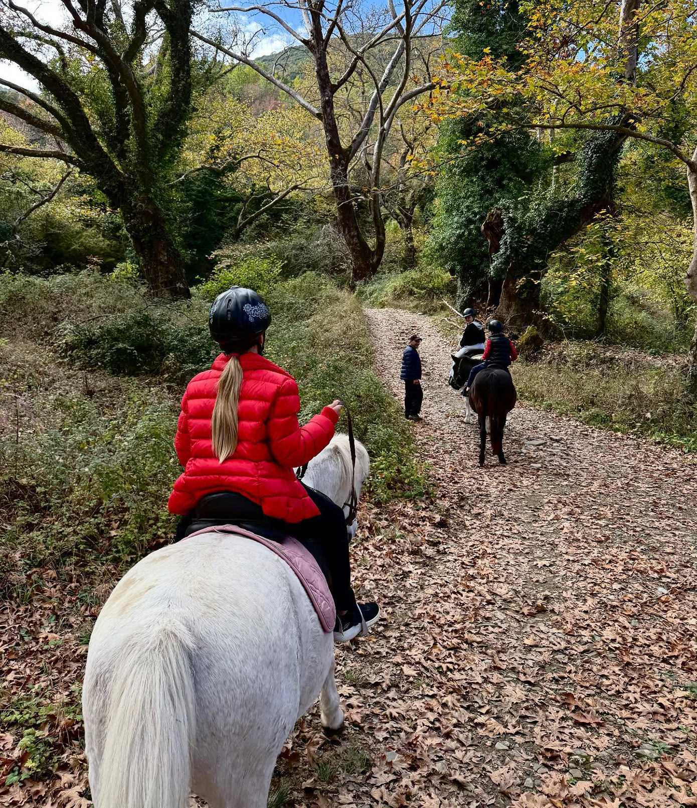 Σε μία από τις φωτογραφίες, η ίδια και η κόρη της φαίνονται να κάνουν ιππασία, απολαμβάνοντας μια ήρεμη διαδρομή μέσα στη φύση και μοιράζοντας χαμόγελα.