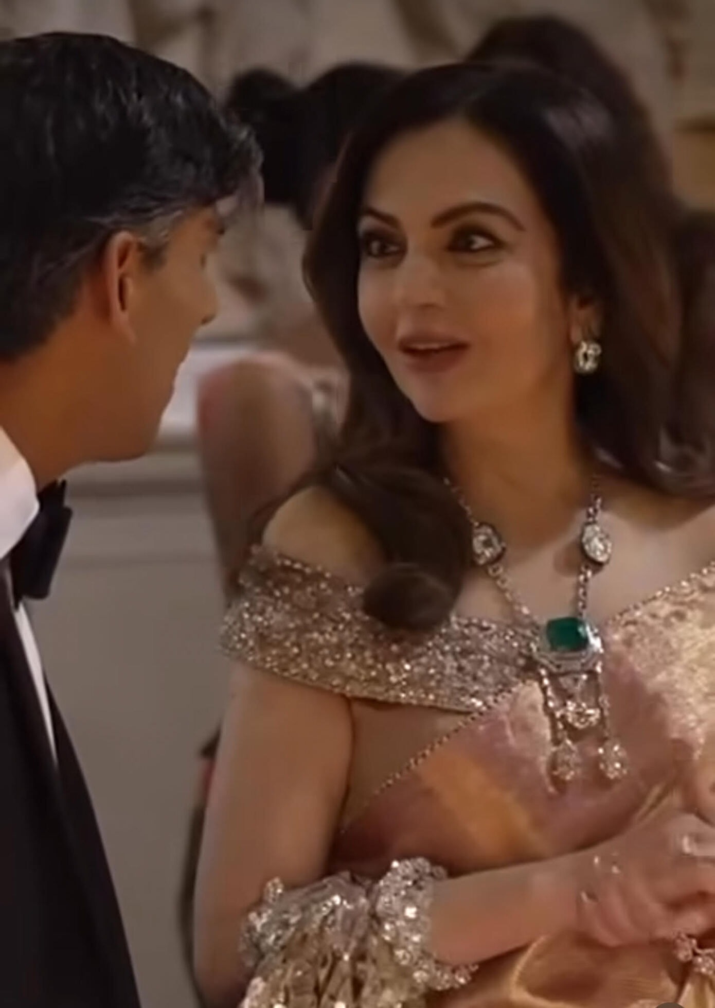 Το «Pink Ball» στο Βρετανικό Μουσείο, με φόντο τα μάρμαρα του Παρθενώνα, που ξεσήκωσε θύελλα αντιδράσεων σε όλο τον Ελληνισμό, μπορεί να ανήκει πλέον στο παρελθόν, ωστόσο η διοργανώτριά του, δισεκατομμυριούχος Nita Ambani, μπορεί να είναι ιδιαίτερα χαρούμενη, καθώς τα έσοδα από εκείνη και μόνο τη βραδιά έφτασαν τα δυόμισι εκατομμύρια λίρες. Ταυτόχρονα, πριν από λίγες ώρες, ήρθε στο φως της δημοσιότητας και ένα στιγμιότυπο που απεικονίζει τη διοργανώτρια του «Pink Ball» να έχει μια εγκάρδια συνομιλία με τον πρώην πρωθυπουργό της Βρετανίας Ρίσι Σούνακ, κατά τη διάρκεια εκείνης της βραδιάς. Η απαστράπτουσα διοργανώτρια μπορεί να μην είχε επιλέξει να φορέσει το βαρύτιμο περιδέραιο της συλλογής της, αλλά ένα εξίσου ιδιαίτερο και πολλών καρατίων κολιέ με διαμάντια σε μέγεθος καρυδιού, θα λέγαμε, με ένα κεντρικό σμαράγδι που «βγάζει» κυριολεκτικά μάτι.