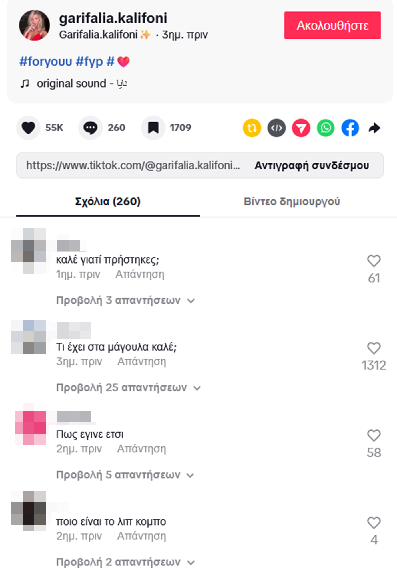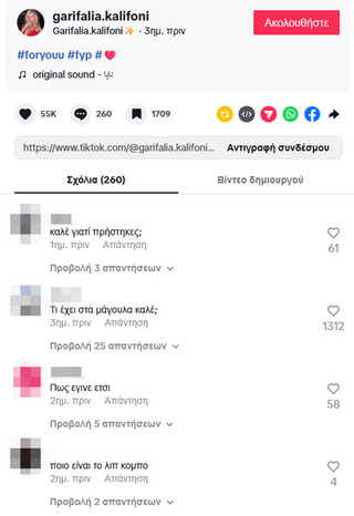 Η Γαρυφαλλιά Καληφώνη δεν έκρυψε τη δυσαρέσκειά της για ορισμένα σχόλια που άρχισαν να εμφανίζονται κάτω από ένα βίντεο που ανέβασε στο TikTok, σχετικά με την εμφάνισή της.