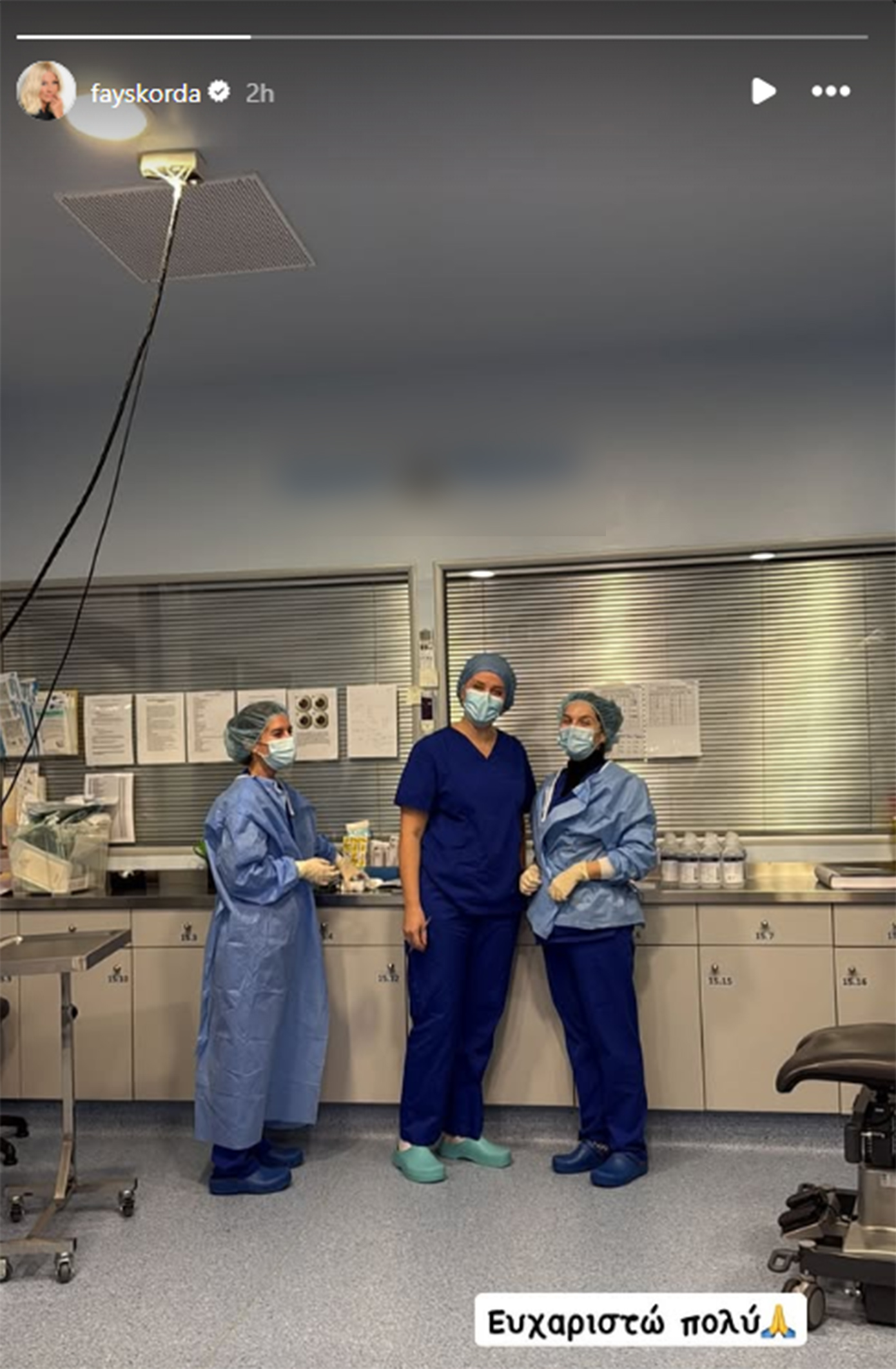 Η Φαίη Σκορδά ανάρτησε στο Instagram μια φωτογραφία από κλινική όπου εξετάστηκε για το πρόβλημα που την ταλαιπώρησε στο μάτι. Με τη δημοσίευση αυτή ευχαρίστησε τους γιατρούς που τη βοήθησαν και έδειξε πως η κατάστασή της έχει ήδη βελτιωθεί, χωρίς ωστόσο να μπαίνει σε λεπτομέρειες.