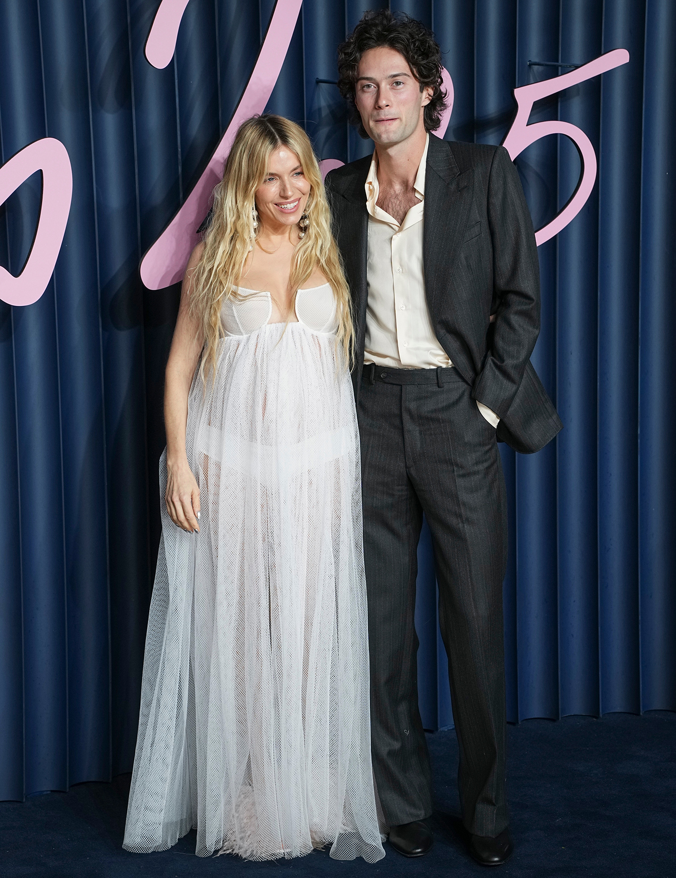 Η Σιένα Μίλερ, που έγινε style icon στις αρχές των 00s, εμφανίστηκε με ένα διάφανο φόρεμα Givenchy, το οποίο αναδείκνυε τη φουσκωμένη κοιλιά της.