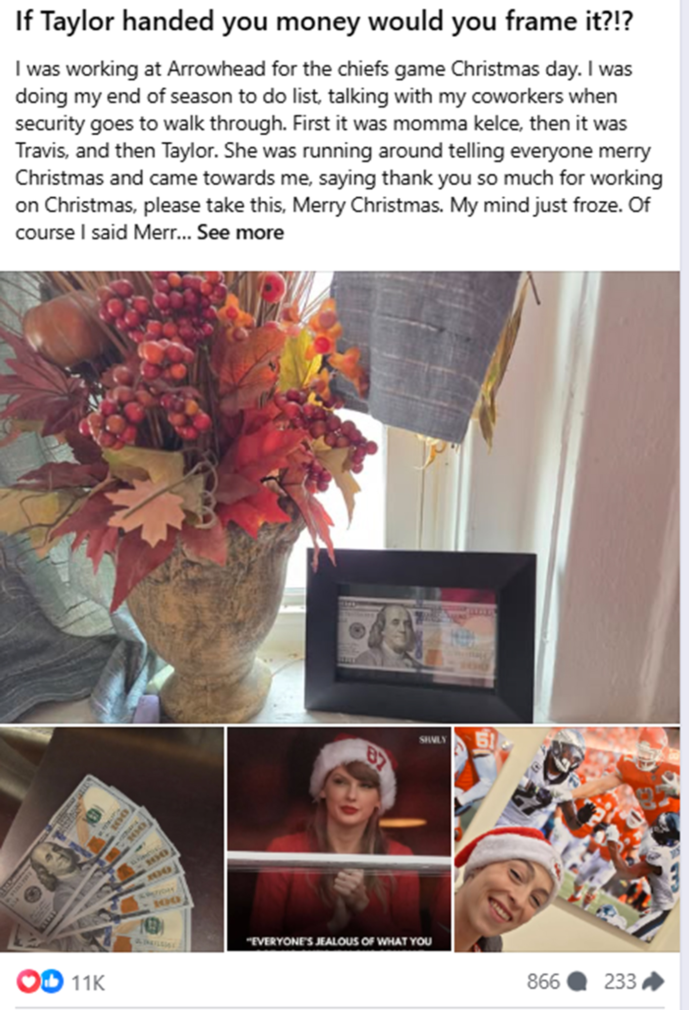 Η δημοφιλής τραγουδίστρια, αφού βρέθηκε στο γήπεδο για να στηρίξει τον αρραβωνιαστικό της, Τράβις Κέλσι, και τους Kansas City Chiefs, προχώρησε στη συνέχεια σε γενναιόδωρη χειρονομία, μοιράζοντας φιλοδωρήματα στους υπαλλήλους.