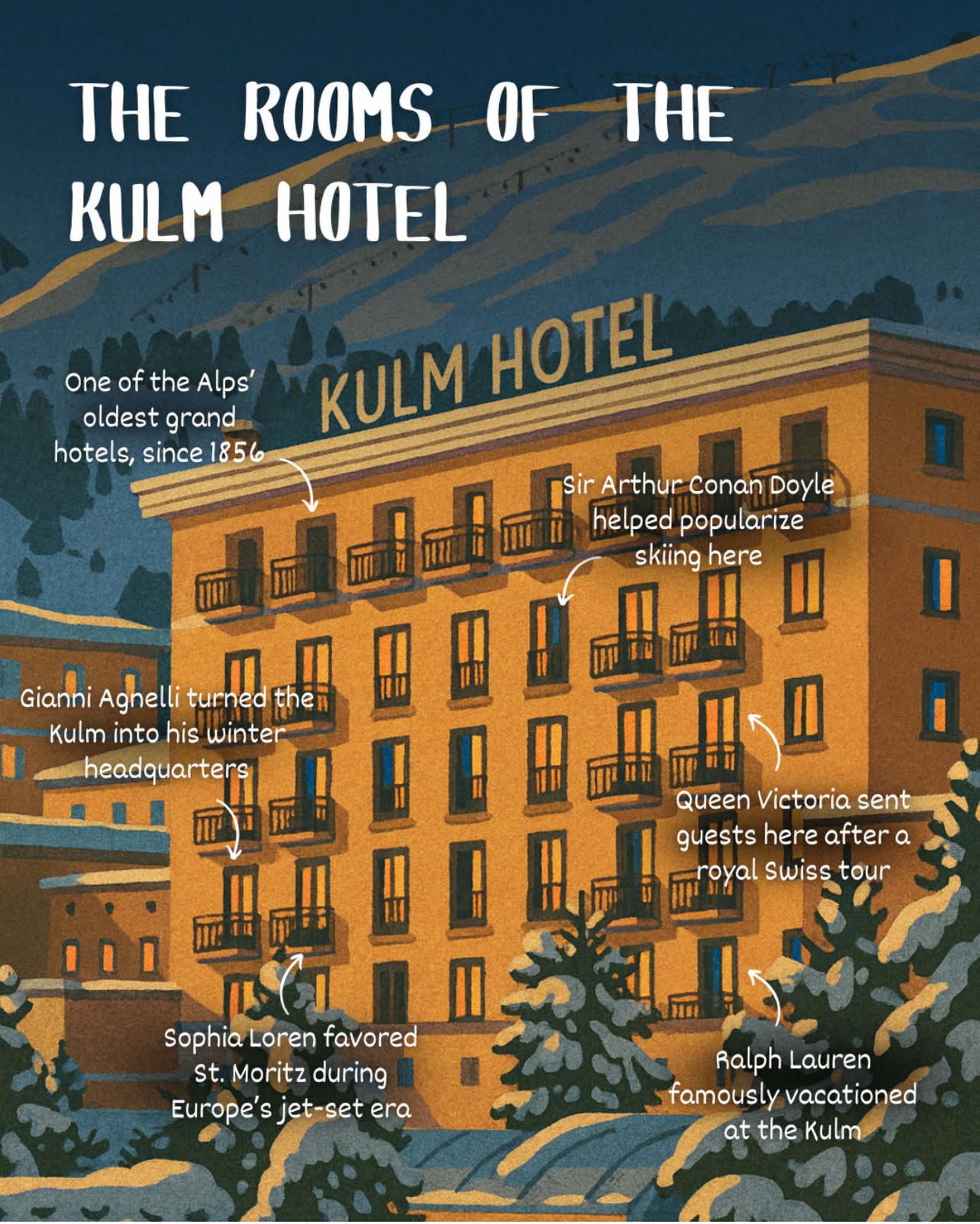 Μια πολύ ιδιαίτερη μακέτα παρουσιάστηκε για το ξενοδοχείο «Kulm» στην Ελβετία που ανήκει στις επιχειρήσεις της οικογένειας Νιάρχου. Κύριο χαρακτηριστικό της εν λόγω μακέτας το «επιθετικό» marketing που παρουσιάζει τους διάσημους που έχουν μείνει τα προηγούμενα χρόνια σε αυτό, σπάζοντας ουσιαστικά έναν άγραφο νόμο πολλών ετών που ήθελε να υπάρχει ένας κώδικας σιωπής γύρω από τους υψηλούς καλεσμένους που παραθέριζαν στα ξενοδοχεία της χώρας των Άλπεων. Ανάμεσα σε αυτούς ο Gianni Agnelli, η Sophia Loren, ο Ralph Lauren, η Βασίλισσα Βικτώρια και ο Sir Arthur Conan Doyle.