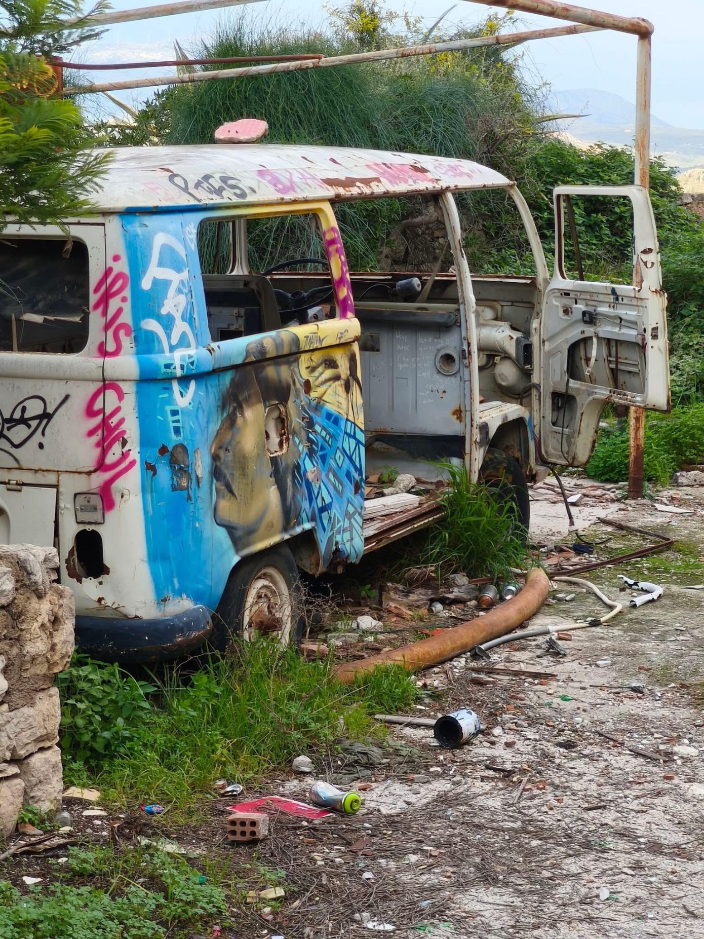 Και από την επένδυση στο Μεξικό σε μια εικόνα που σίγουρα δεν μας τιμά και αφορά το θρυλικό «ΞΕΝΙΑ» του Ναυπλίου, όπου η επέλαση των βαρβάρων δεν έχει αφήσει τίποτε όρθιο. Το εν λόγω VW τρανσπόρτερ, όπως πληροφορήθηκα, αφέθηκε εκεί ως περιουσία του «ΞΕΝΙΑ» Ναυπλίου και βανδαλίστηκε όπως και οι περισσότεροι χώροι του εμβληματικού ξενοδοχείου που σχεδιάστηκε το 1958 από τον Ιωάννη Τριανταφυλλίδη και λειτούργησε για πρώτη φορά το 1961. Η ξενοδοχειακή μονάδα αποτελούνταν από ένα ενιαίο κτήριο στο οποίο τοποθετούνταν όλοι οι βοηθητικοί χώροι και διέθετε 58 δωμάτια.