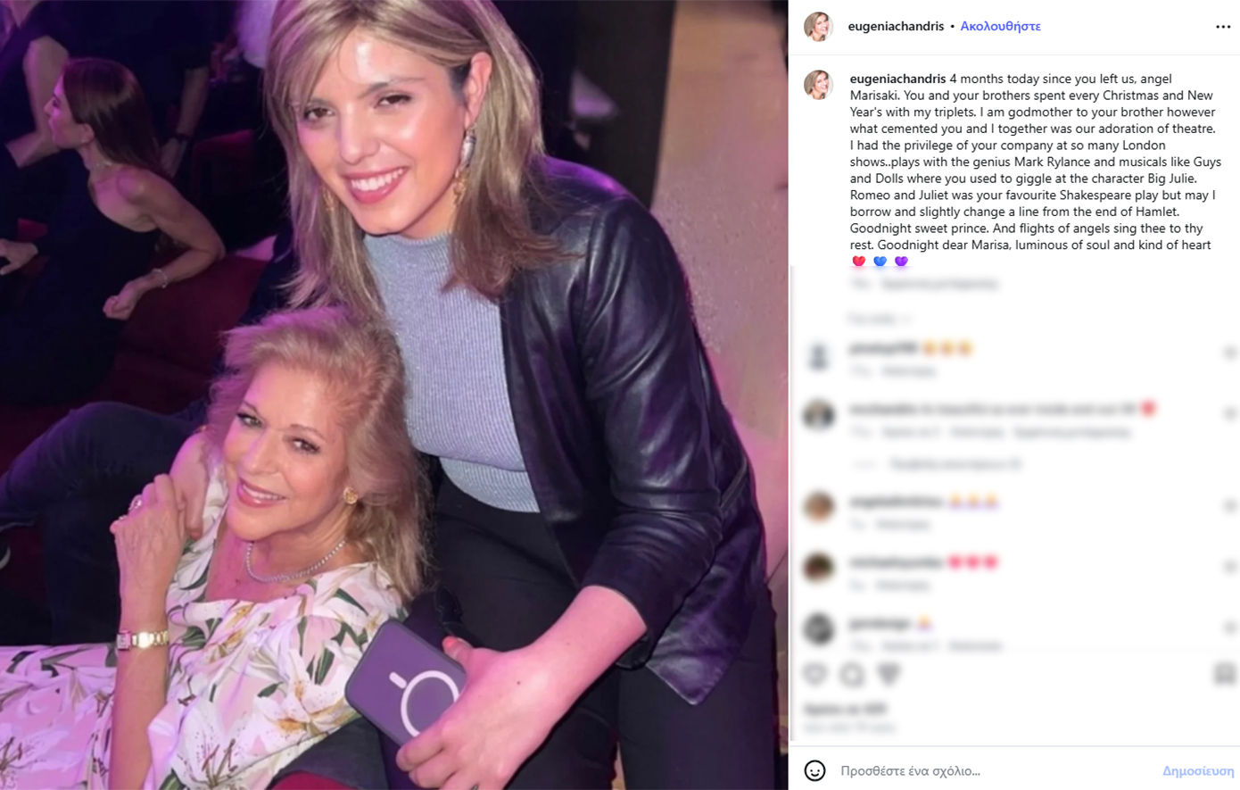 Η Ευγενία Χανδρή ανέφερε μεταξύ άλλων στο μήνυμα της, που το συνόδευσε μια με φωτογραφία που απεικονίζει την ίδια με την αδικοχαμένη Μαρίσσα Λαιμού: