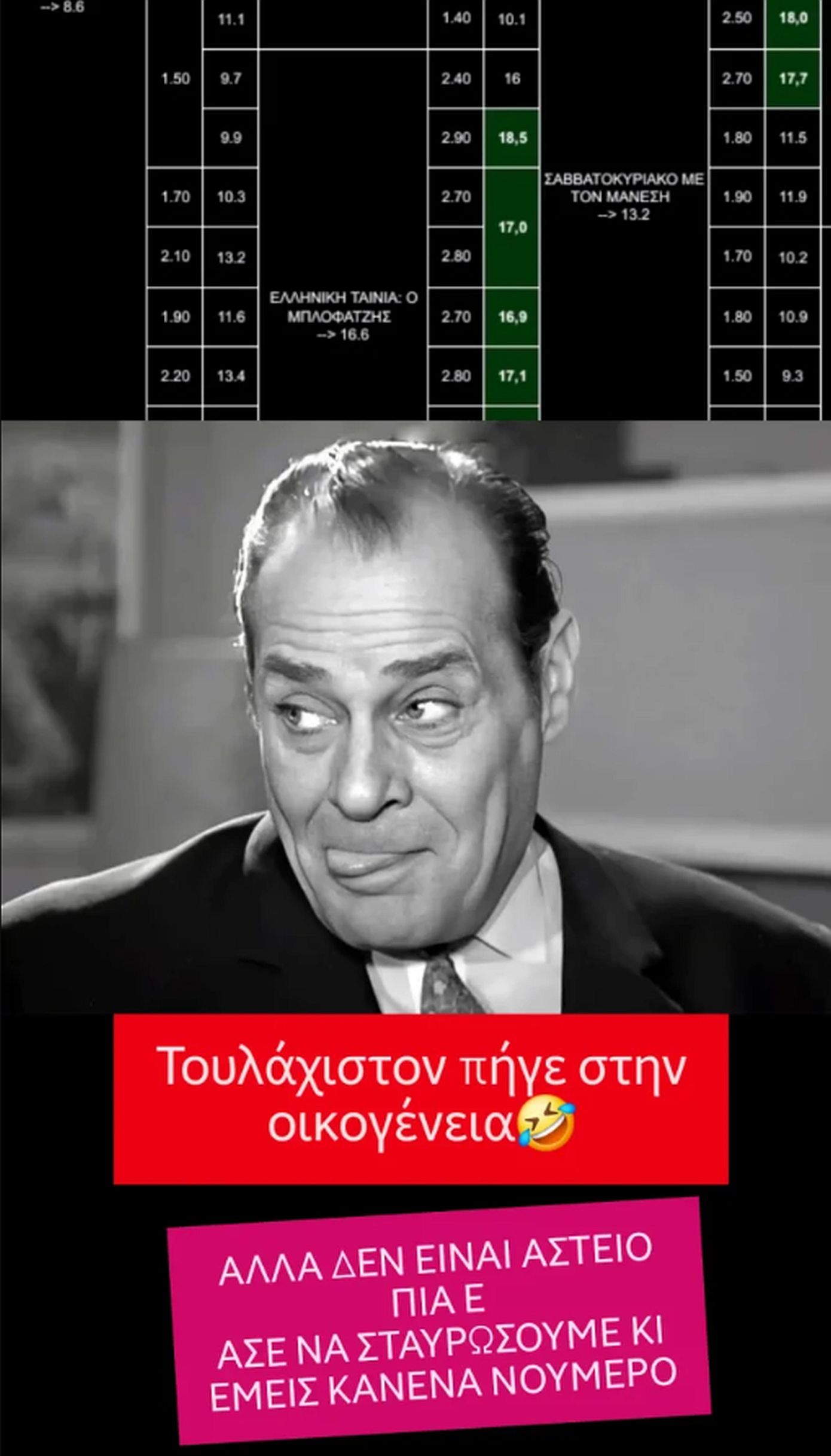 “Τουλάχιστον πήγε στην οικογένεια. Αλλά δεν είναι αστείο πια ε! Άσε να σταυρώσουμε κι εμείς κανένα νούμερο” σχολίασε, με χιούμορ, ο Λάμπρος Κωνσταντάρας σ’ αυτό το νέο μοίρασμα με τους διαδικτυακούς του φίλους στα social media.