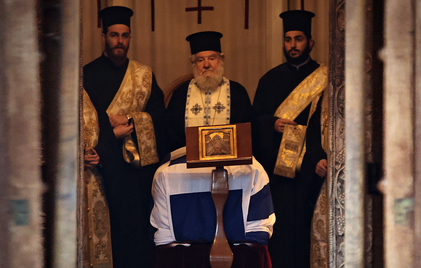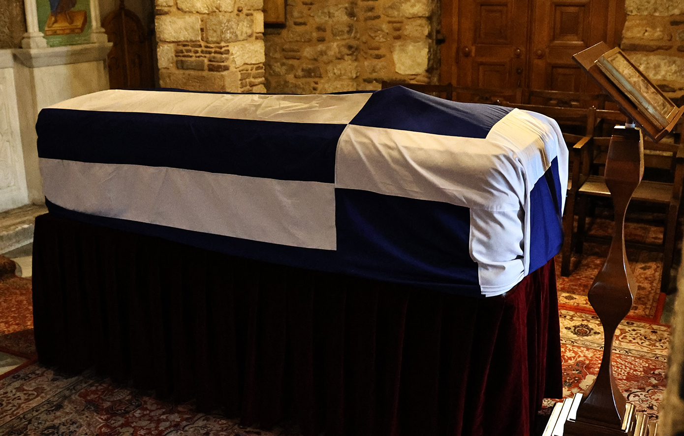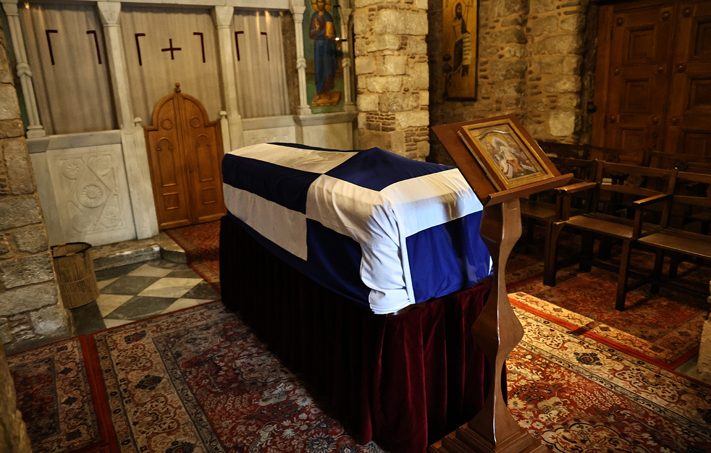 Με την ελληνική σημαία έφτασε το φέρετρο στο παρεκκλήσι του Αγίου Ελευθερίου
