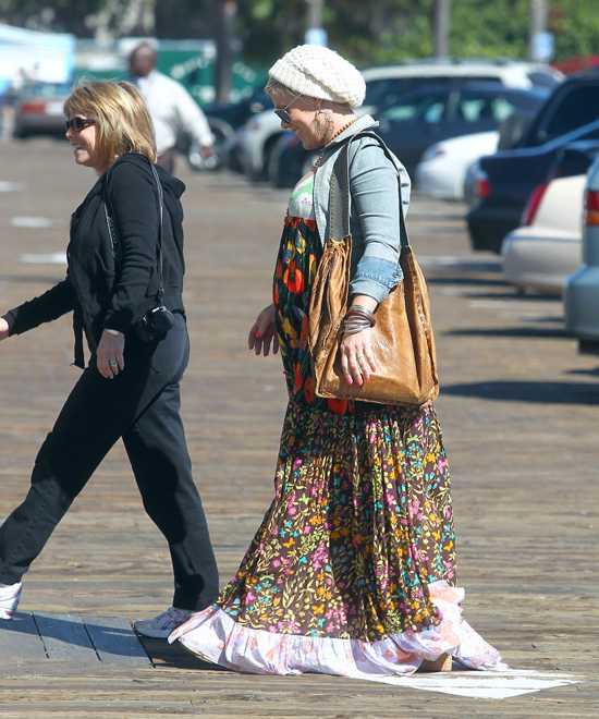Με φουσκωμένη κοιλίτσα εμφανίστηκε η Pink την ώρα που έκανε τη βόλτα της στη Σάντα Μόνικα.