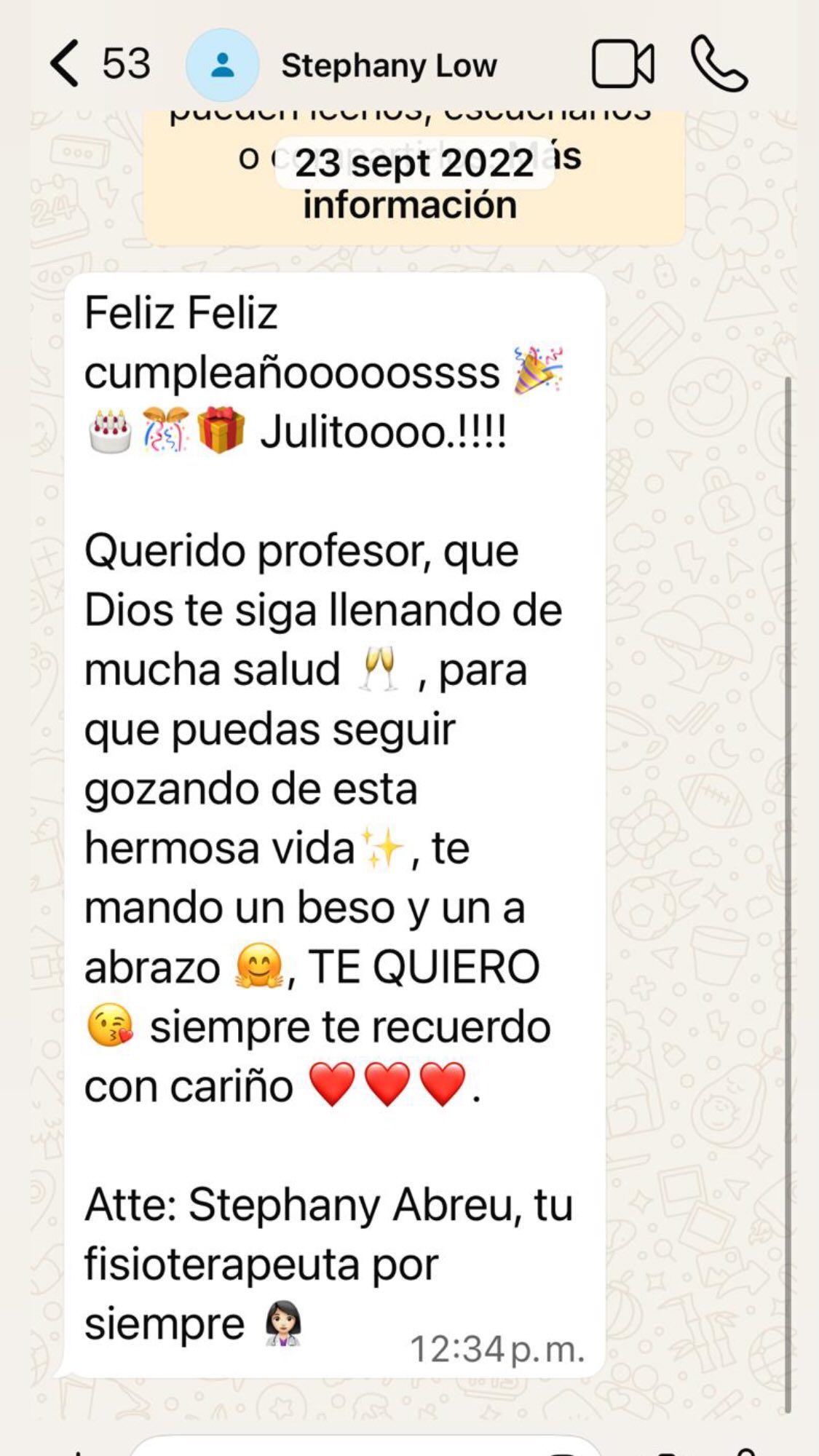 «Χρόνια πολλά, ευτυχισμένα γενέθλια, Χουλίτο… Με εκτίμηση: η φυσικοθεραπεύτριά σου για πάντα».