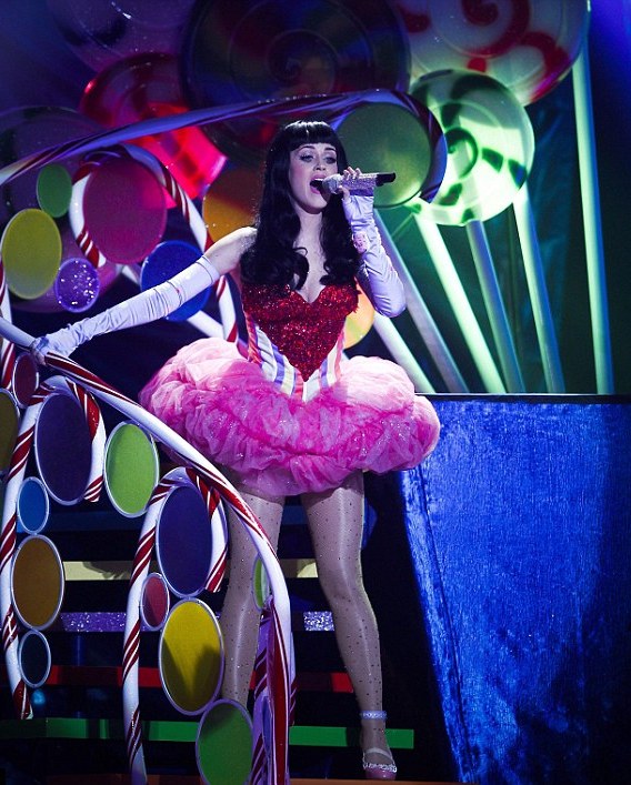 Ντυμένη σαν καραμελίτσα με ριγέ μπούστο και μια κόκκινη καρδιά στο ντεκολτέ, η Katy ξεκίνησε από την Πορτογαλία την 9μηνη παγκόσμια περιοδεία της California Dreams Tour.