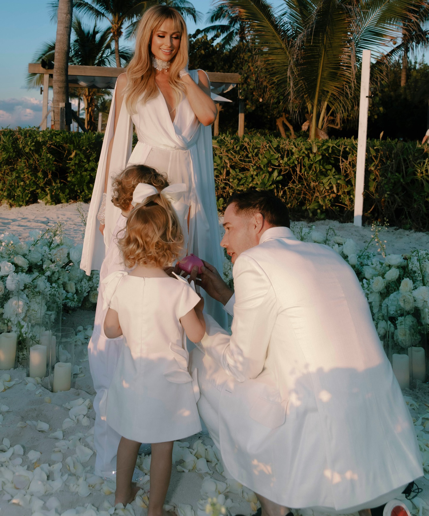 Η Πάρις Χίλτον, που έχει αποκτήσει με τον Ριμ Κάρτερ τον τρίχρονο Φοίνιξ και τη δίχρονη Λόντον, έγραψε στο Instagram: «Πέντε χρόνια μετά… και εξακολουθεί να κάνει την καρδιά μου να χτυπά πιο δυνατά. Την Ημέρα του Αγίου Βαλεντίνου, στα τιρκουάζ νερά των Τερκς και Κάικος, λίγες μέρες πριν από τα γενέθλιά μου, ο παντοτινός μου Βαλεντίνος μου έκανε ξανά πρόταση γάμου και είπα ξανά “ναι”. Αυτή τη φορά όμως δεν ήμασταν μόνο σύζυγοι. Ήμασταν μαμά και μπαμπάς. Ο Φοίνιξ και η Λόντον παρακολουθούσαν την αγάπη που τους έφερε στον κόσμο. Η ανανέωση των όρκων μας δεν είναι απλώς ο εορτασμός πέντε όμορφων χρόνων — είναι ένας τρόπος να δείξουμε στα παιδιά μας ότι η αγάπη μεγαλώνει, βαθαίνει και επιλέγει ξανά ο ένας τον άλλον, ξανά και ξανά. Πέντε χρόνια μαζί. Μια αιωνιότητα μπροστά μας. Η αιωνιότητα δεν είναι αρκετή μαζί σου, Κάρτερ».