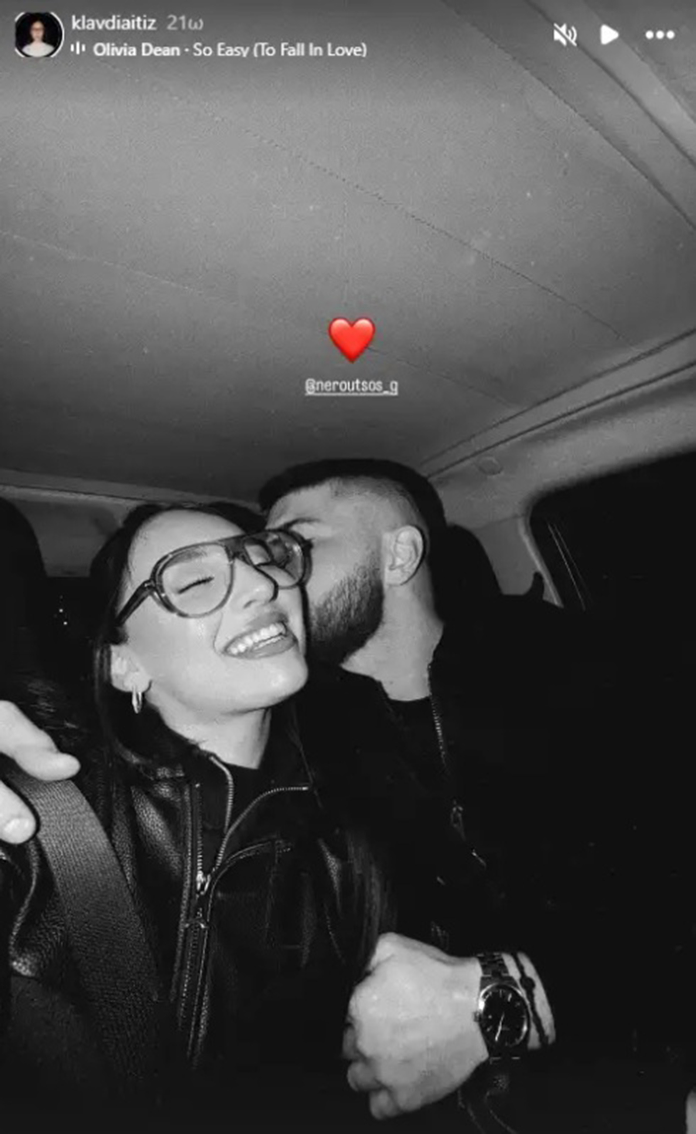 Στην ανάρτηση της Klavdia, η ίδια επέλεξε έναν λιτό αλλά συναισθηματικό τρόπο για να εκφράσει την αγάπη της: πρόσθεσε μια κόκκινη καρδιά και το όνομα του συντρόφου της. Το στιγμιότυπο συνοδευόταν από το τραγούδι “So Easy (To Fall in Love)” της Olivia Dean, κάνοντας την ανάρτηση ακόμα πιο ρομαντική και προσωπική.