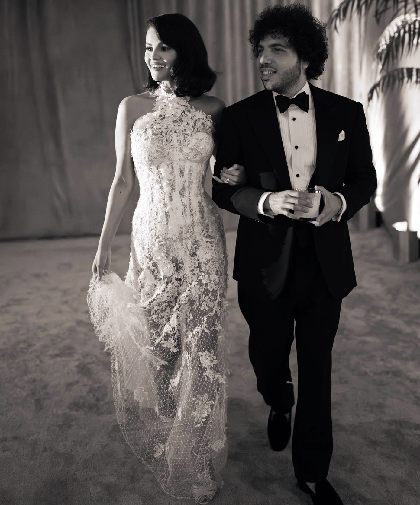 Ανάμεσα στις εικόνες ήταν και δύο στιγμιότυπα του γάμου τους που πραγματοποιήθηκε τον περασμένο Σεπτέμβριο στην Καλιφόρνια. Σε αυτές, το ζευγάρι φαίνεται να περπατά γεμάτο ευτυχία μπροστά στους προσκεκλημένους του, αμέσως μετά την ανταλλαγή των όρκων.