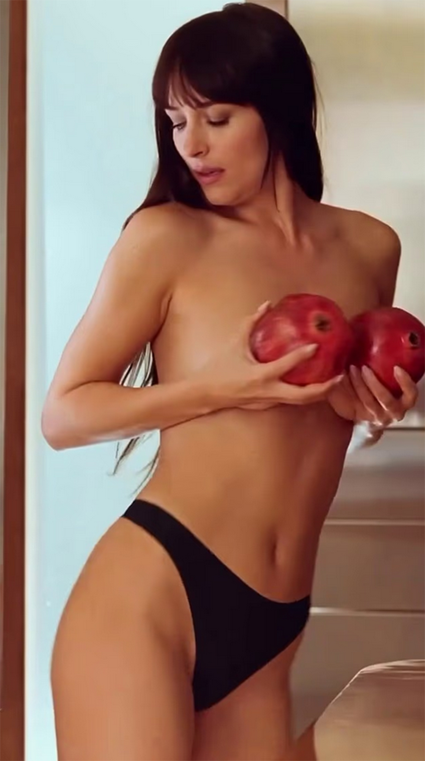Στις πρώτες φωτογραφίες που κυκλοφόρησαν, η σταρ εμφανίζεται χωρίς σουτιέν ή το κάτω εσώρουχο σε ορισμένα στιγμιότυπα, καλύπτοντας διακριτικά το σώμα της με διαφορετικούς τρόπους.
