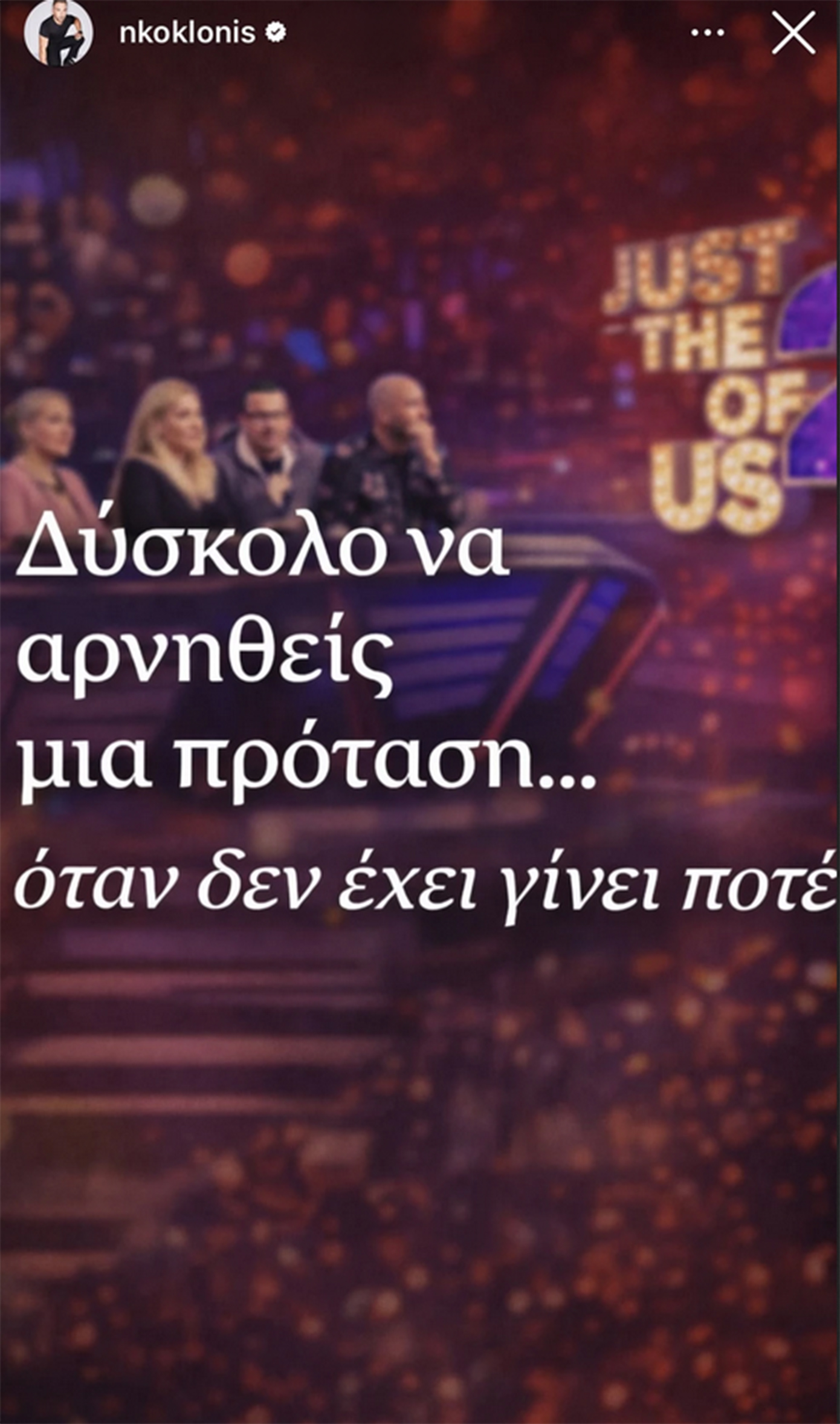 Η απάντηση από την πλευρά της παραγωγής δεν άργησε να έρθει, και μάλιστα με τρόπο που ανέτρεψε πλήρως τα λεγόμενα του τραγουδιστή. Ο Νίκος Κοκλώνης, με μια ανάρτηση στον προσωπικό του λογαριασμό στο Instagram, πήρε θέση χωρίς να κατονομάσει, αλλά «φωτογραφίζοντας» ξεκάθαρα το περιστατικό.