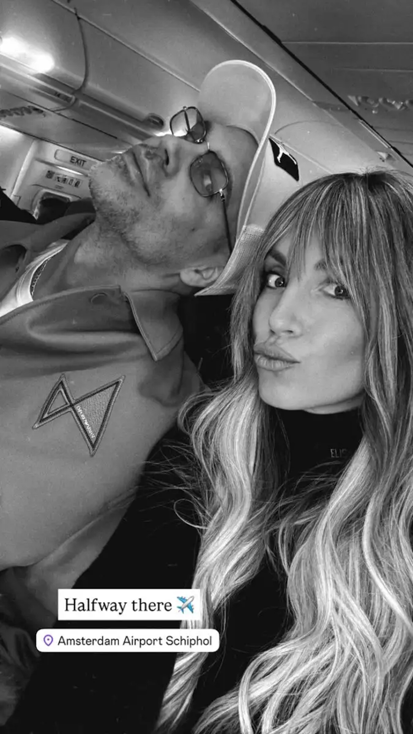 Σε ένα από τα stories που δημοσιοποίησε, η Αθηνά Οικονομάκου ποζάρει δίπλα στον Μπρούνο Τσερέλα μέσα στο αεροπλάνο, καταγράφοντας ένα κοινό τους στιγμιότυπο κατά τη διάρκεια του ταξιδιού προς τις Γαλλικές Άλπεις. Στην εικόνα πρόσθεσε τη φράση «Halfway there» ενημερώνοντας ότι βρίσκεται στο αεροδρόμιο «Amsterdam Airport Schiphol», δείχνοντας πως βρίσκονταν καθ’ οδόν για τον προορισμό τους.