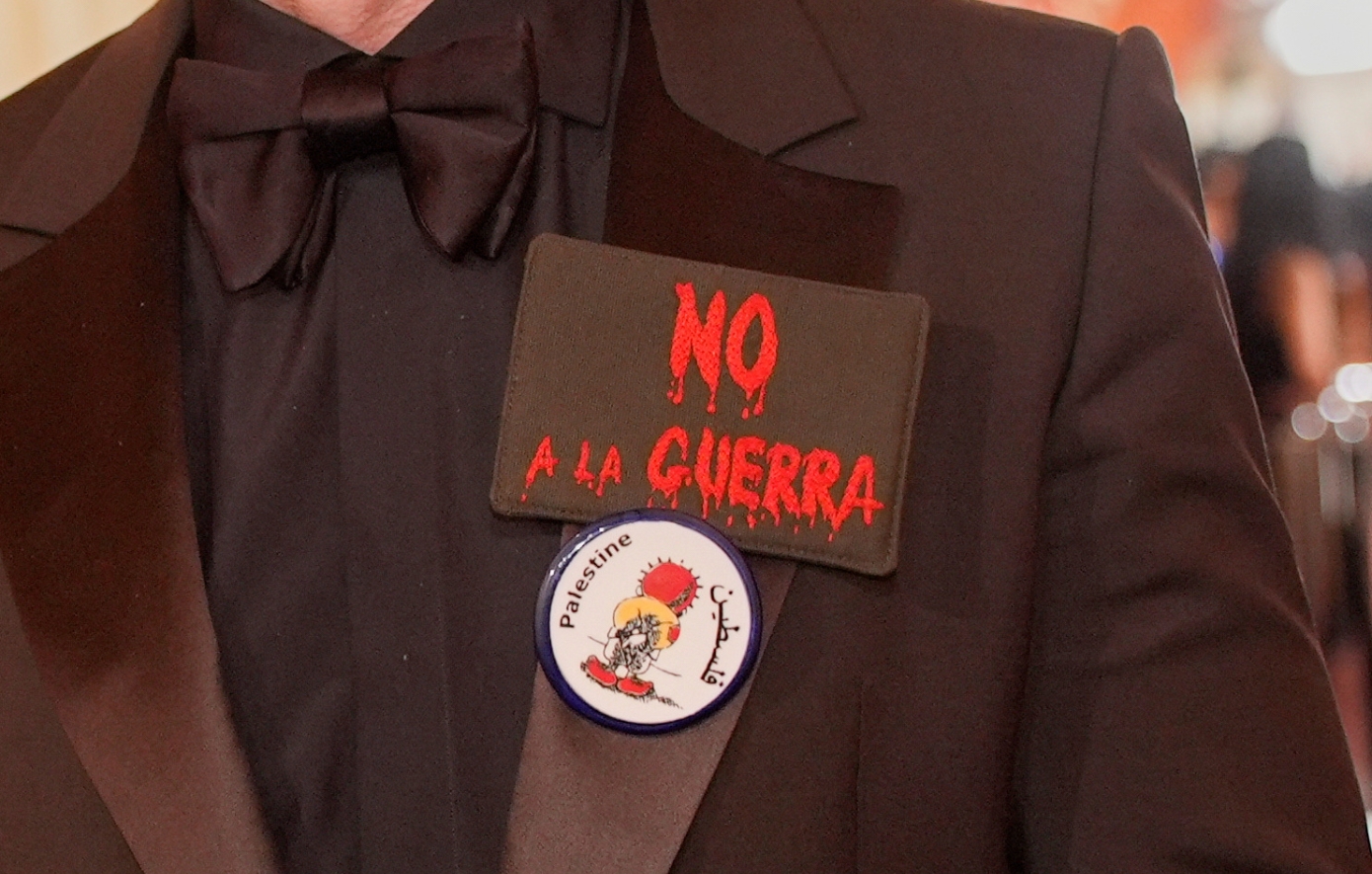 Καθώς περπατούσε προς τη σκηνή, ο Χαβιέρ Μπαρδέμ εθεάθη να φορά δύο καρφίτσες στο πέτο του. Στη μία έγραφε «No a la Guerra», που μεταφράζεται ως «Όχι στον πόλεμο». Η άλλη έδειχνε στήριξη στην Παλαιστίνη.