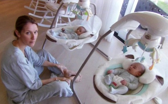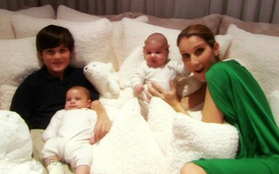 Εμφανίστηκε στην εκπομπή της μαζί με το σύζυγό της Rene Angelil και τα τεσσάρων μηνών αγοράκια της Eddy και Nelson.