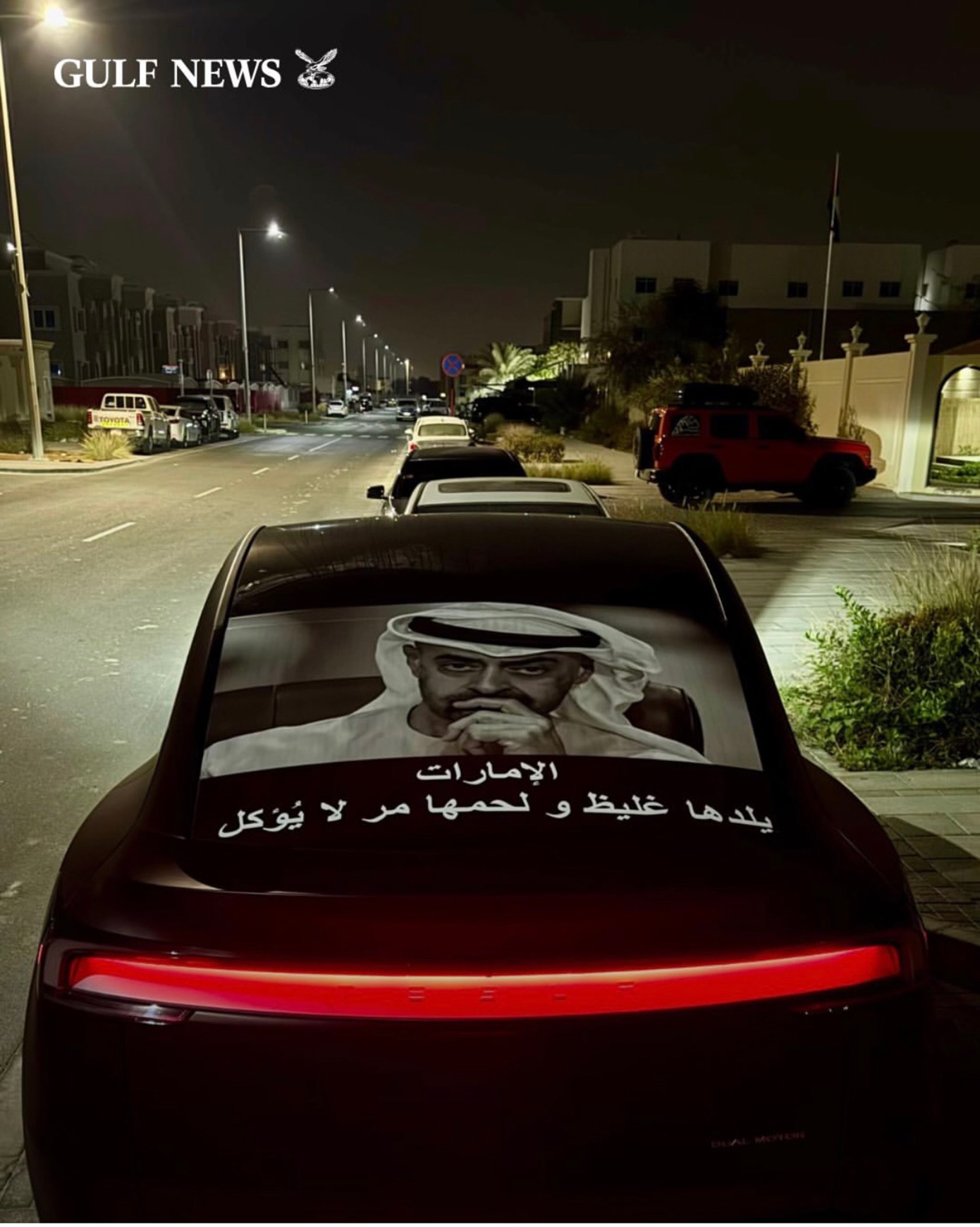 Για την ακρίβεια η φράση που χρησιμοποίησε ο Σεΐχης και που αναφέρει πως «Τα ΗΑΕ έχουν παχύ δέρμα και πικρή σάρκα, δεν είμαστε εύκολη λεία» εκτυπώθηκε και έγινε αυτοκόλλητο σε αυτοκίνητα, σε θήκες τηλεφώνου, ακόμη και σε χάρτινα ποτήρια, όπως φαίνεται στις φωτογραφίες που φιλοξενεί το Gulf News.
