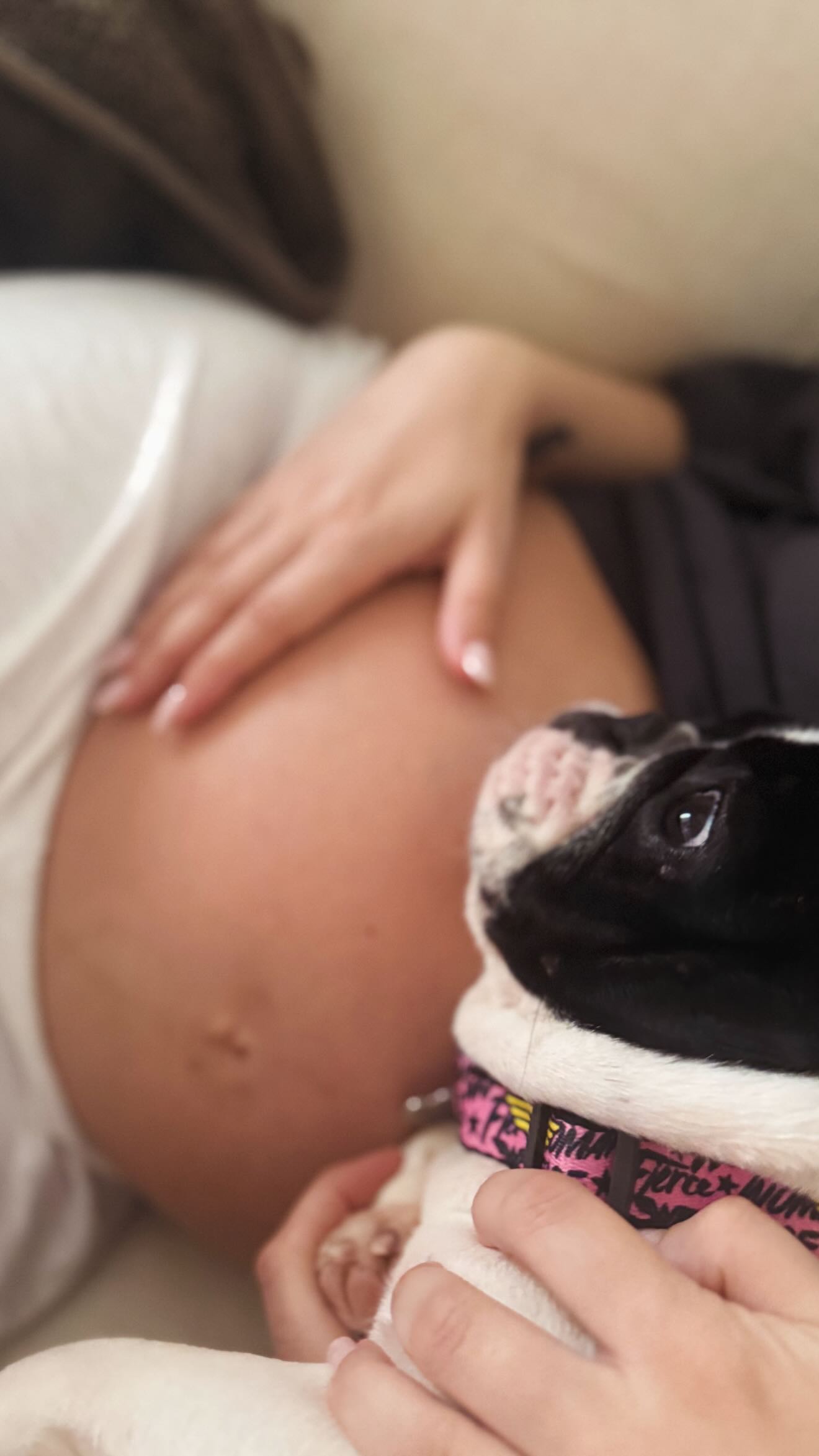 Στη φωτογραφία που τράβηξε ο σύζυγός της, η παρουσιάστρια φαίνεται να ξεκουράζεται στον καναπέ του σπιτιού τους. Στο πλευρό της βρίσκεται η αγαπημένη της σκυλίτσα, η οποία δεν την αποχωρίζεται λεπτό σε αυτή την ιδιαίτερη φάση της ζωής της.