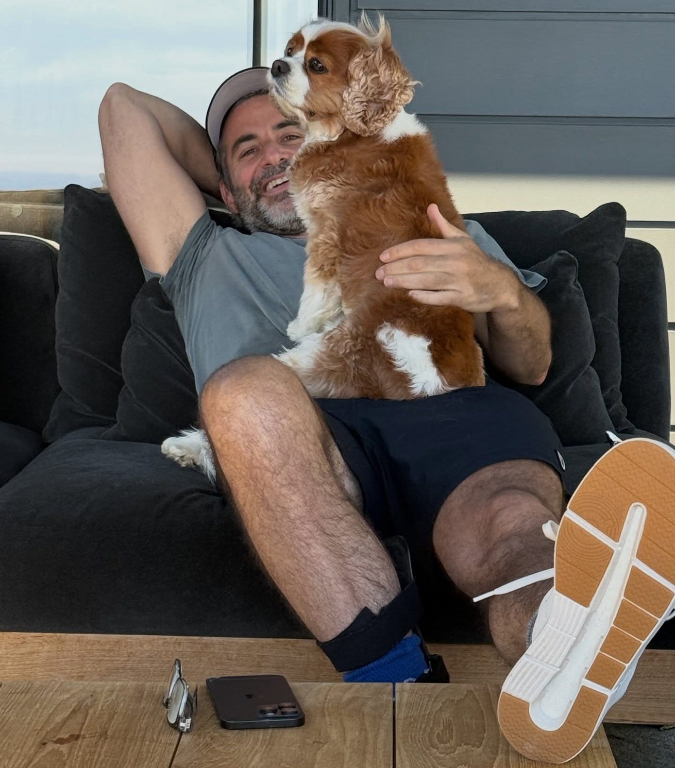 Σε άλλη φωτογραφία, η Τζένιφερ Άνιστον έδειξε τον υπνοθεραπευτή να κρατά στην αγκαλιά του έναν σκύλο.