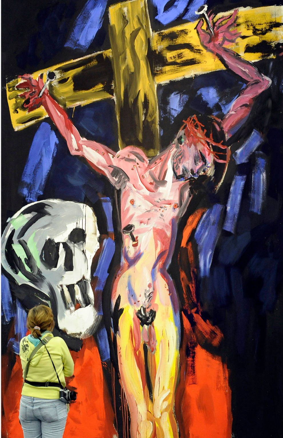 Φόντο μαύρο, τέσσερα καρφιά σε πόδια και παλάμες και μια επιγραφή με αναγραφή του «Ιησούς Ναζωραίος Βασιλεύς Ιουδαίων» σε τρεις γλώσσες. Το βλέμμα του Ιησού γέρνει πάνω και αριστερά. Κι αριστερά είναι η καρδιά και πάνω ο ουρανός. Το στόμα μισάνοιχτο, μόλις ψέλλισε το «Ηλί Ηλί λαμά σαβαχθανί – Θεέ μου, Θεέ μου, γιατί με εγκατέλειψες ;» Ή σχεδόν ετοιμάζεται να το κάνει.