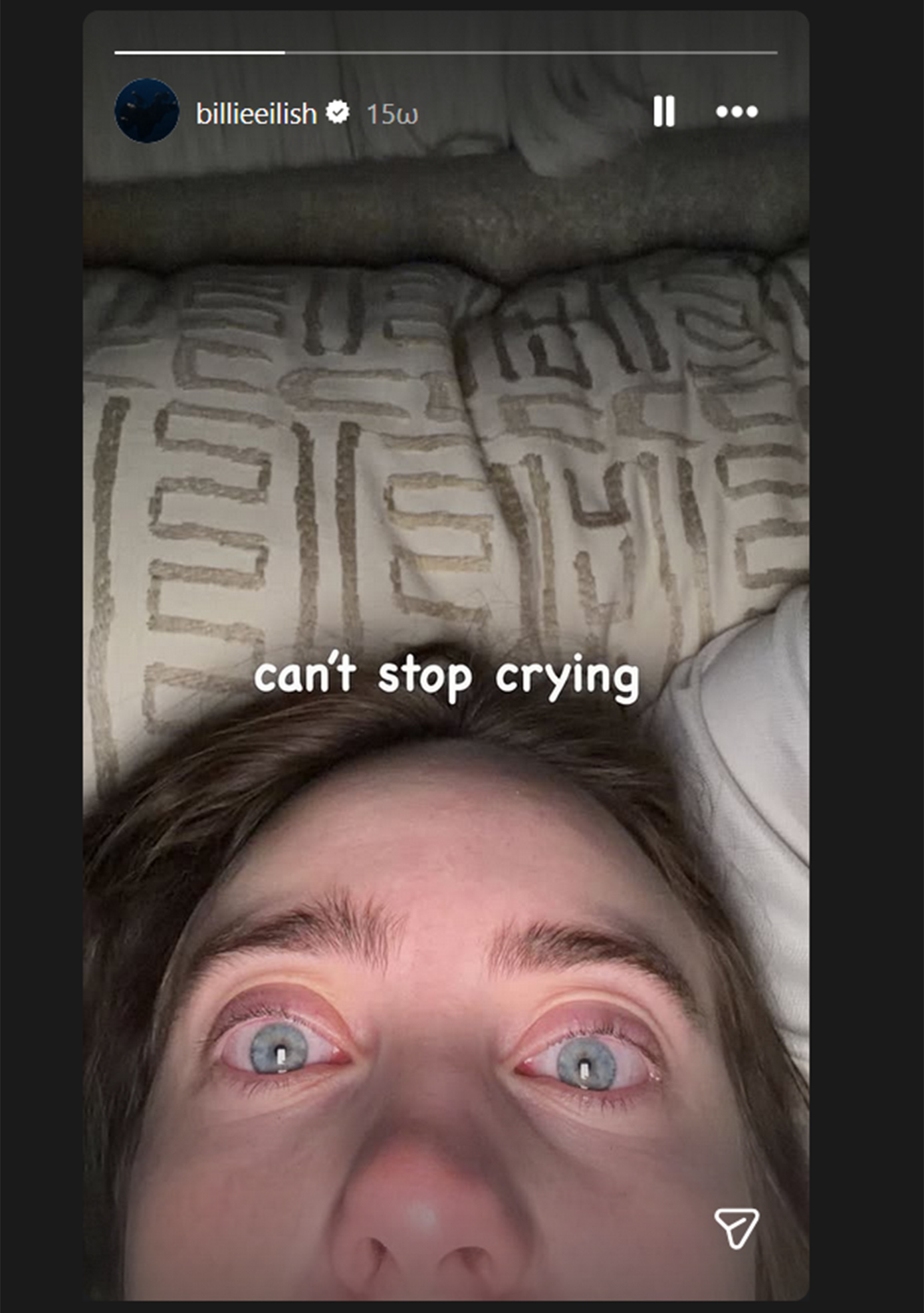 Μετά τη συγκινητική στιγμή, η Μπίλι Άιλις δημοσίευσε στο Instagram μια κοντινή selfie, γράφοντας ότι «δεν μπορώ να σταματήσω να κλαίω».