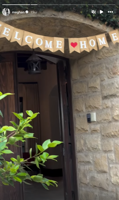 Η Μέγκαν Μαρκλ μοιράστηκε την υποδοχή που τους επιφύλαξαν ο πρίγκιπας Άρτσι και η πριγκίπισσα Λίλιμπετ, οι οποίοι είχαν κρεμάσει στο σπίτι τους στο Μοντεσίτο ένα πανό που έγραφε «Welcome Home».