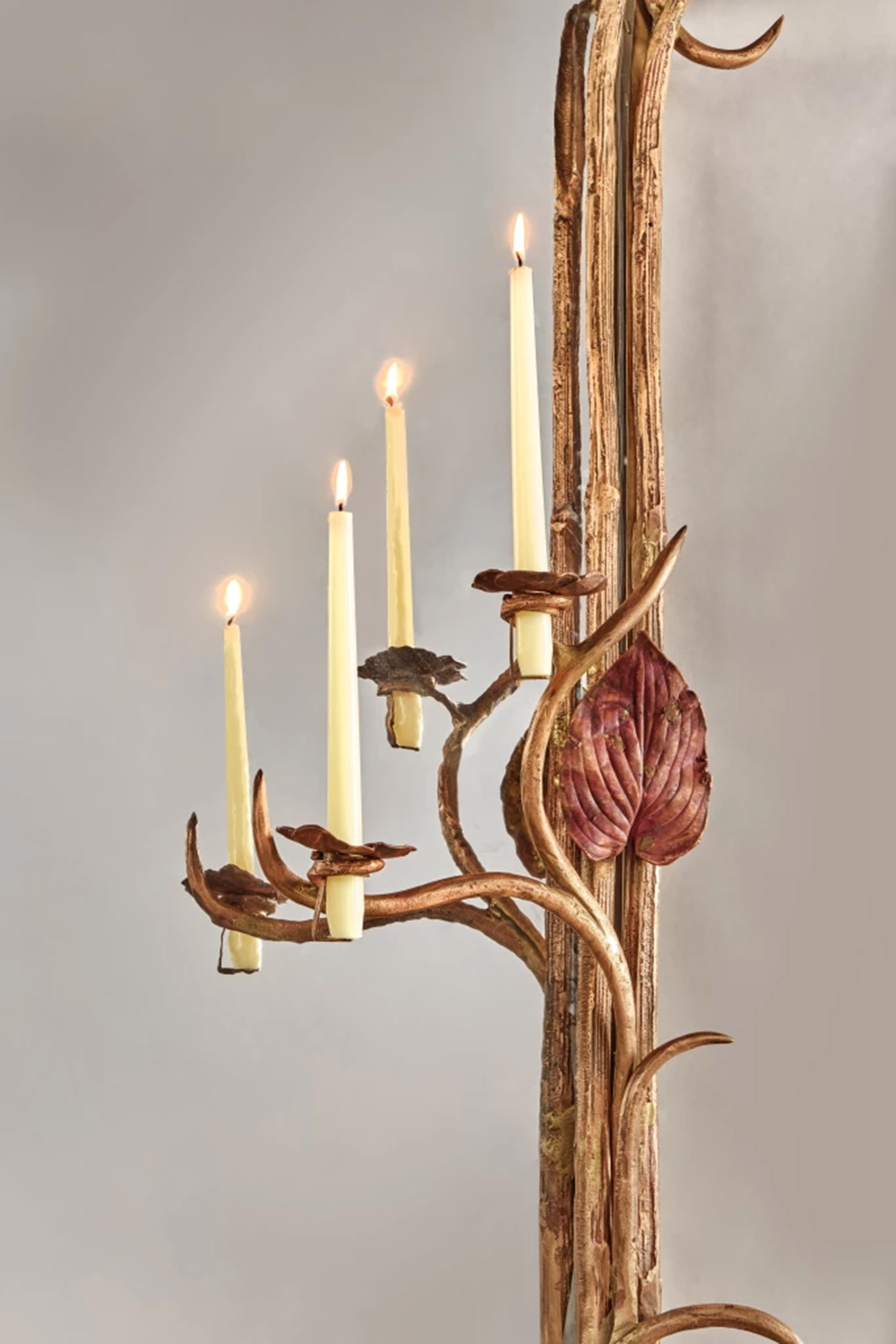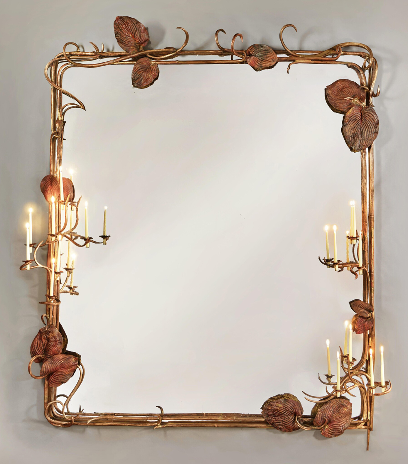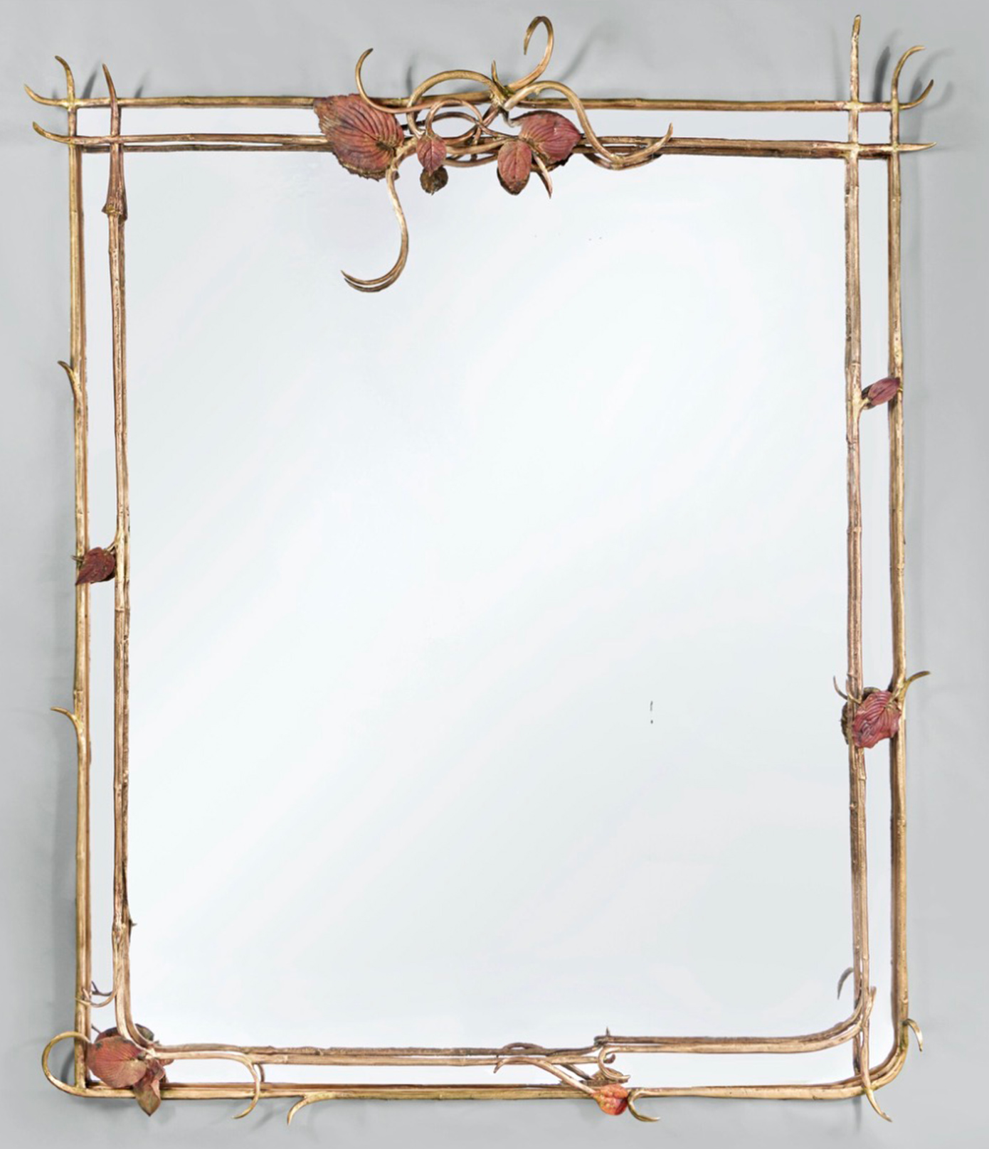 Στη διαδικασία δηλαδή που ακολούθησε η Κλοντ Λαλάν, τα φύλλα και τα λουλούδια που συλλέχθηκαν από τον κήπο της τοποθετήθηκαν σε γαλβανικά λουτρά που διατήρησαν τις φλέβες και τα περιγράμματά τους στο μέταλλο. Ωστόσο, το τελικό αποτέλεσμα υπερβαίνει την απλή αναπαραγωγή, τονίζουν οι ειδικοί. Και αυτό καθώς οι μορφές των φύλλων και των λουλουδιών τονίστηκαν, ενώ οι καμπύλες τους επιμηκύνθηκαν. Όσο για τις συγκολλήσεις σε όλους τους καθρέφτες, αυτές παραμένουν ορατές, υπογραμμίζοντας τον χειροποίητο χαρακτήρα του έργου και την απαιτητική δεξιοτεχνία που απαιτείται για τη δημιουργία του.