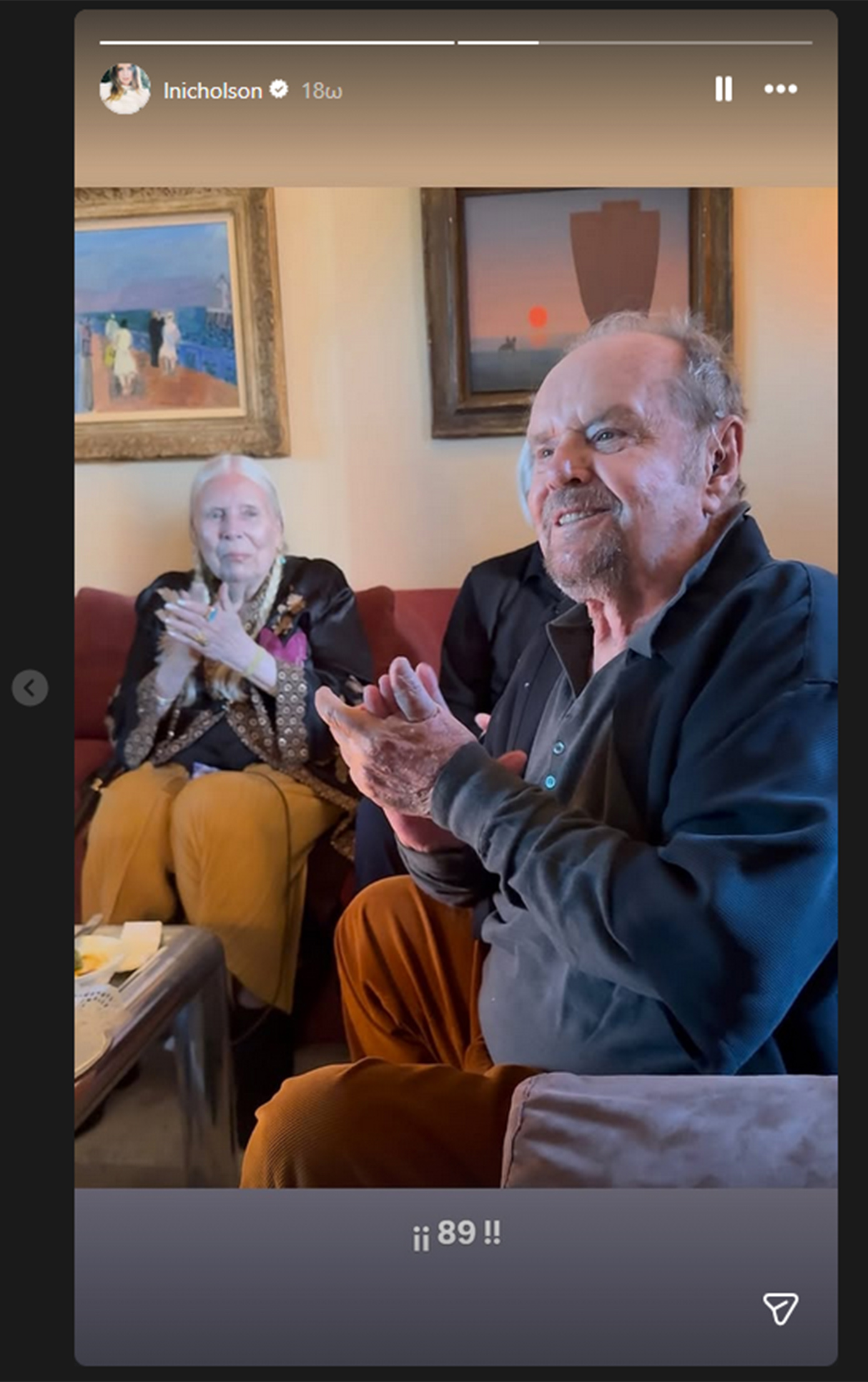 Στη φωτογραφία, ο πατέρας της φαίνεται να χαμογελά με το χαρακτηριστικό του χαμόγελο, ενώ χειροκροτεί μαζί με τη Τζόνι Μίτσελ και τους υπόλοιπους παρευρισκόμενους. Η Λορέιν συνόδευσε τη συγκινητική ανάρτηση με τη λεζάντα «89!!».