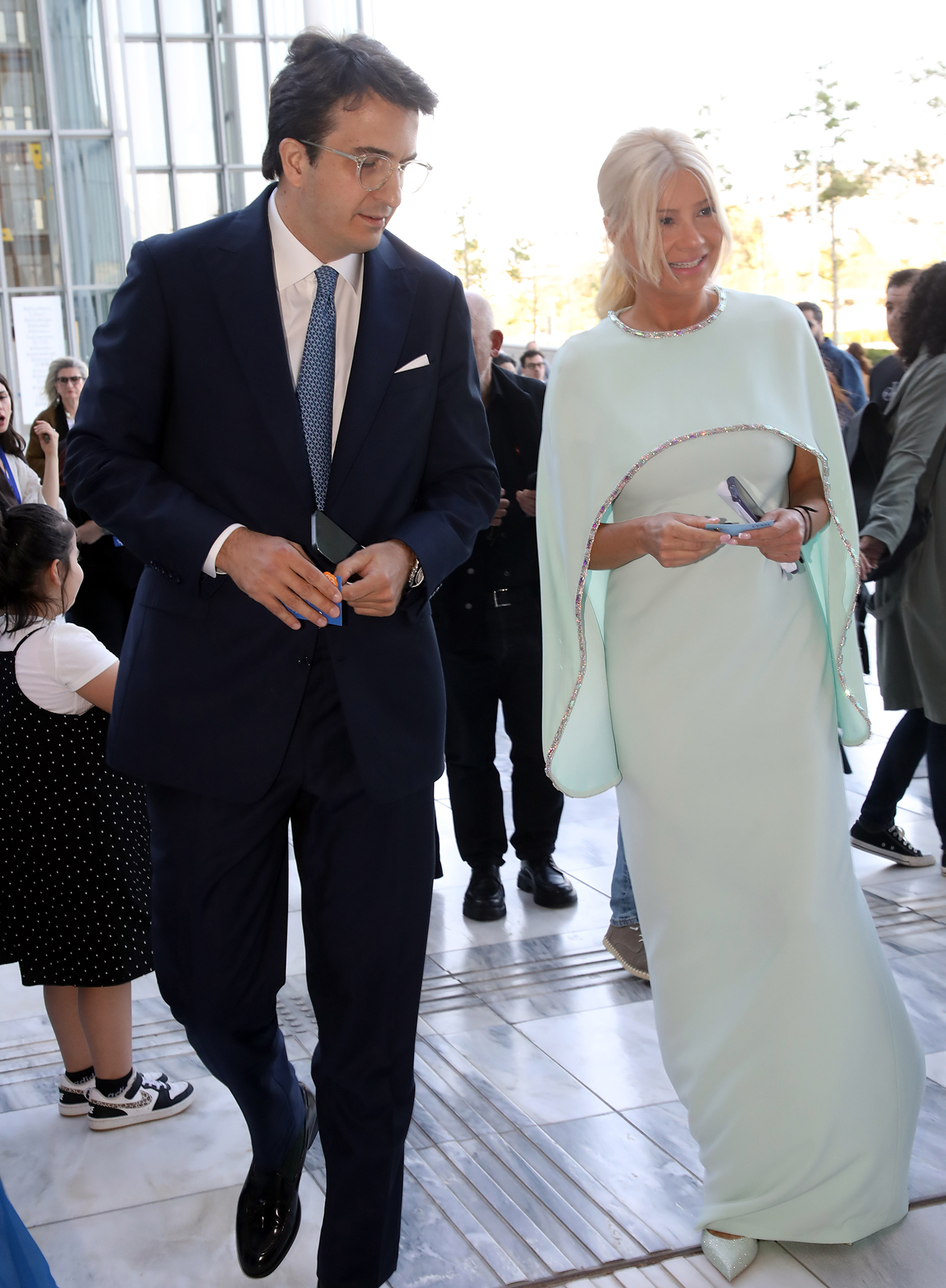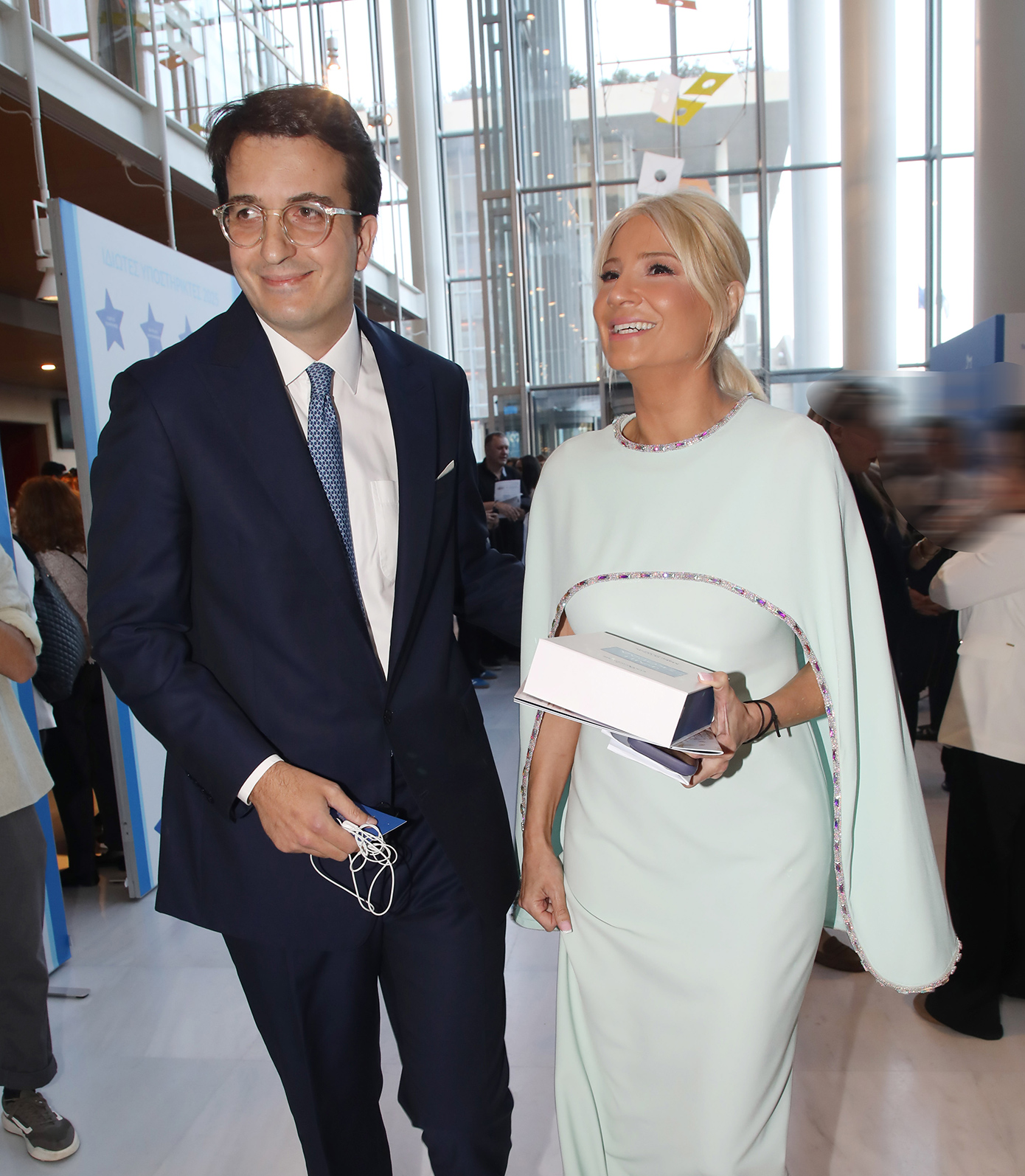 Ο Αλέξανδρος Αθανασιάδης, ένας άνθρωπος που αποφεύγει συστηματικά την έκθεση και τις κοσμικές εκδηλώσεις, στάθηκε στο πλευρό της χαμογελαστός, ενισχύοντας την εικόνα ενός δεμένου ζευγαριού που προτιμά την ουσία από την επίδειξη.