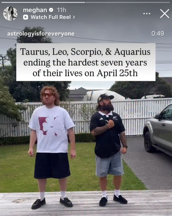 Μέσα από αναδημοσιεύσεις λογαριασμών όπως το «Astrology is For Everyone», η Μέγκαν Μαρκλ άφησε να εννοηθεί ότι ταυτίζεται απόλυτα με την πρόβλεψη που θέλει τους Ταύρους, τους Λέοντες, τους Σκορπιούς και τους Υδροχόους να κλείνουν έναν κύκλο ριζικών ανατροπών.
