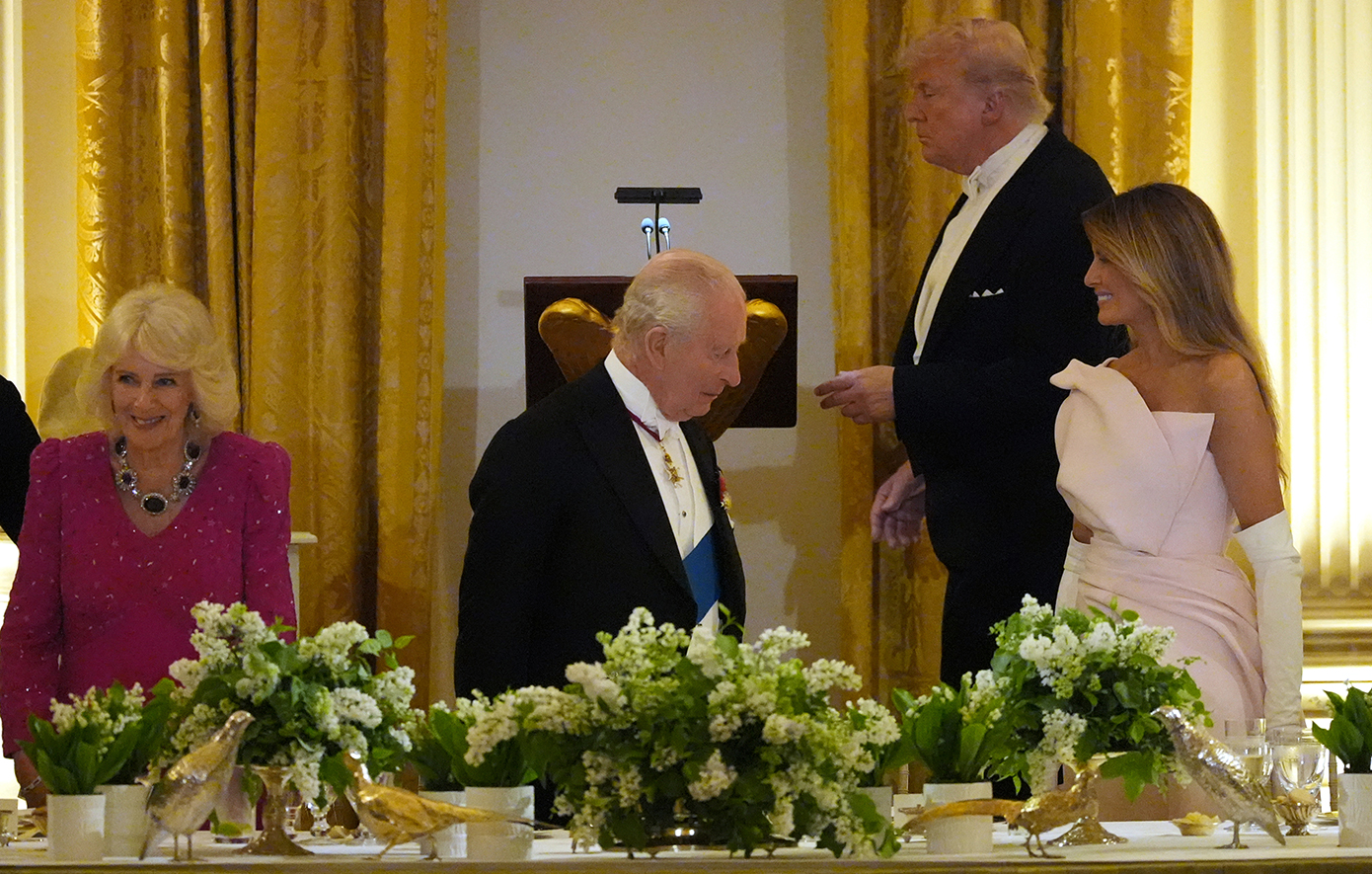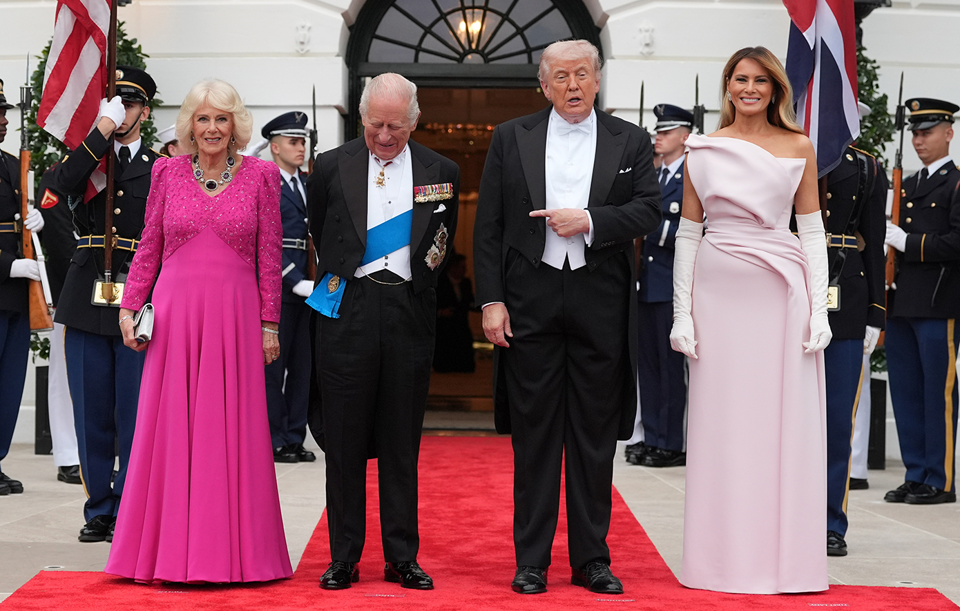 Η Μελάνια και ο Ντόναλντ Τραμπ υποδέχθηκαν τον 77χρονο Κάρολο και την 78χρονη Καμίλα με χειραψίες τη Δευτέρα, όταν τα μέλη της βασιλικής οικογένειας έφτασαν στον Λευκό Οίκο. Το βασιλικό ζεύγος θα παραμείνει στις ΗΠΑ έως την Πέμπτη.