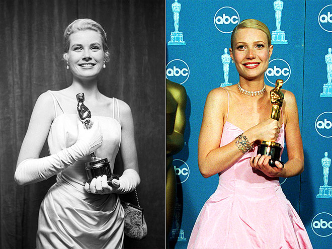 Η εμφάνιση της Grace Kelly το 1995 με της Gwyneth Paltrow το 1999 παρουσιάζει πολλά κοινά στοιχεία, όχι μόνο για το φόρεμα σε παστέλ χρωματισμούς αλλά ακόμα και για τον τρόπο με τον οποίο κρατούν το βραβείο της καλύτερης ηθοποιού.