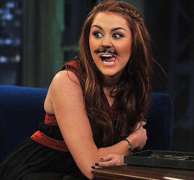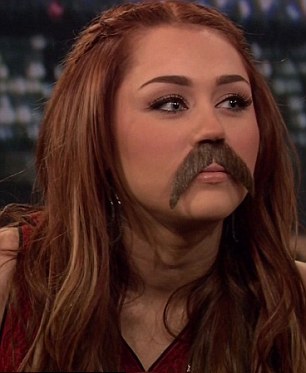 Έχουμε συνηθίσει να τη βλέπουμε με στιλάτες και πολύ προσεγμένες εμφανίσεις. Αυτή τη φορά όμως η 18χρονη Miley Cyrus αποφάσισε να διασκεδάσει λίγο τις εντυπώσεις και εμφανίστηκε στη βραδινή εκπομπή Saturday Night Live του Jimmy Fallon με… μουστάκι, θυμίζοντας κάτι από τον πατέρα της Billy Ray Cyrus.