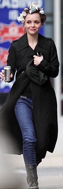 Η Christina Ricci φόρεσε ένα απλό τζιν και το παλτουδάκι και βγήκε στους δρόμους της Νέας Υόρκης, μόνο που ξέχασε ότι είχε τυλίξει με ρόλεϊ τα μαλλιά της!