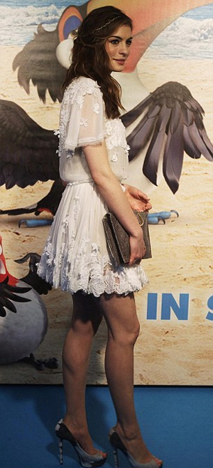 Έτσι η Anne Hathaway «εκμεταλλεύτηκε» την περίσταση για να… επιδείξει τα καλογυμνασμένα της πόδια, φορώντας ένα κοντό λευκό φόρεμα