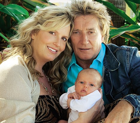 Όχι, στη συγκεκριμένη φωτογραφία δεν απαθανατίζονται τρεις γενεές, αλλά μόλις δύο. Ο γερόλυκος της ροκ Rod Steward (66 ετών) ποζάρει για το εξώφυλλο του αμερικανικού «Hello» με την 39χρονη σύζυγό του Penny Lancaster και τον 1,5 μηνών Aiden… το όγδοο παιδί του!
