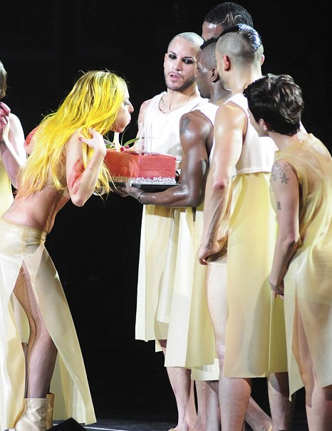 Αφού ευχήθηκε υγεία και χαρά στους fan της, η Lady Gaga έσβησε τα κεράκια, τα οποία μετά πέταξε στο κοινό ως σουβενίρ της βραδιάς! Η ίδια φάνηκε πολύ συγκινημένη και χαρούμενη ταυτόχρονα για τον εορτασμό των γενεθλίων της…