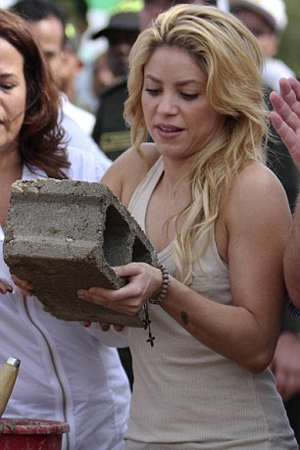 Η διάσημη κολομβιανή τραγουδίστρια πήγε στην Καρταχένα, όπου έβαλε με τα ίδια της τα χέρια τα θεμέλια για ένα σχολείο στην περιοχή που πλήττεται από τη φτώχεια.